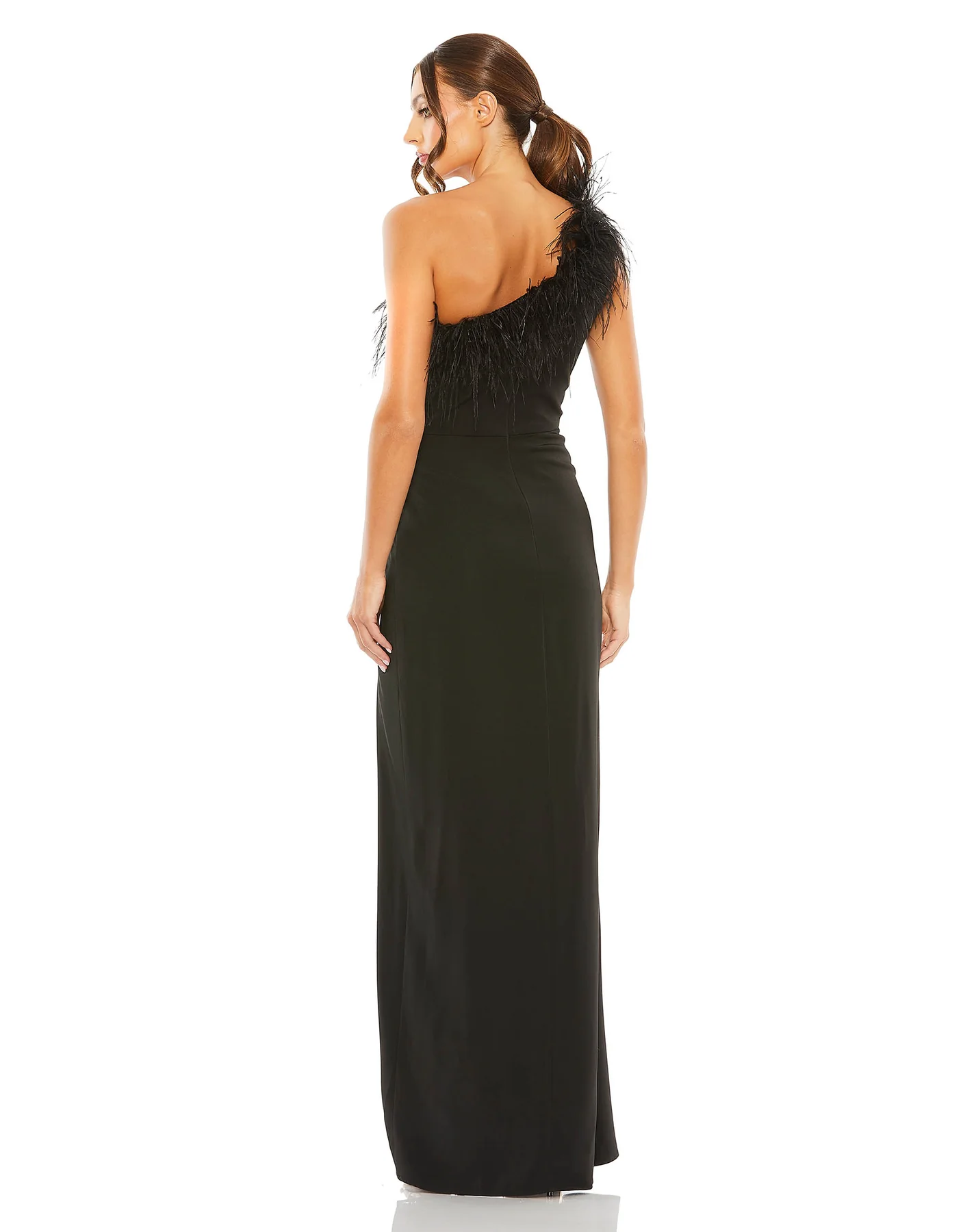 ONE SHOULDER FEATHER TRIM GOWN