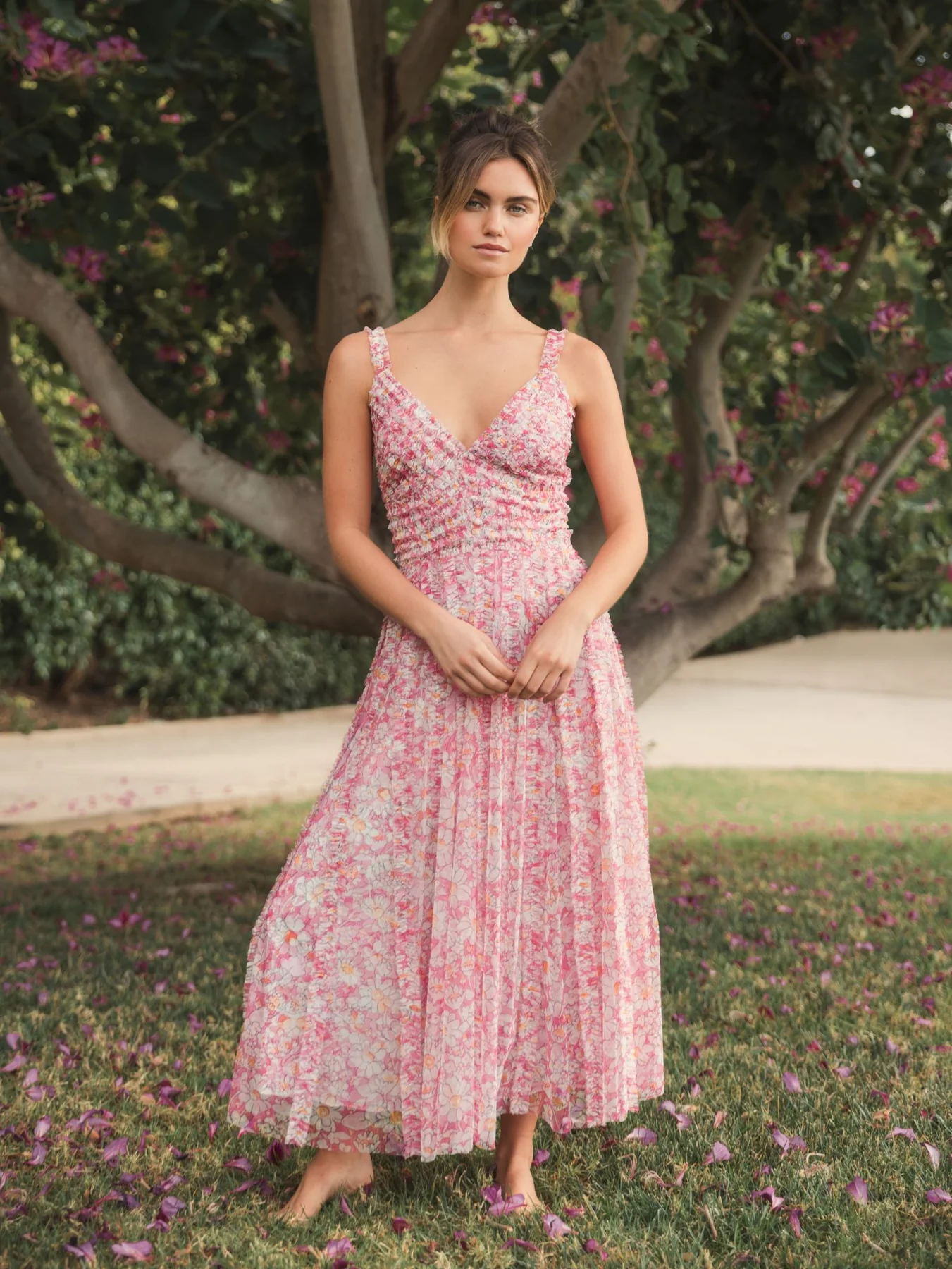 Our Mesh V-Neck Floral Print Dress is perfect for any occasion. This dress features a flattering V-neckline and a delicate mesh overlay with a beautiful floral print. Ideal for garden parties or casual outings, this dress ensures you'll look and feel stylish.