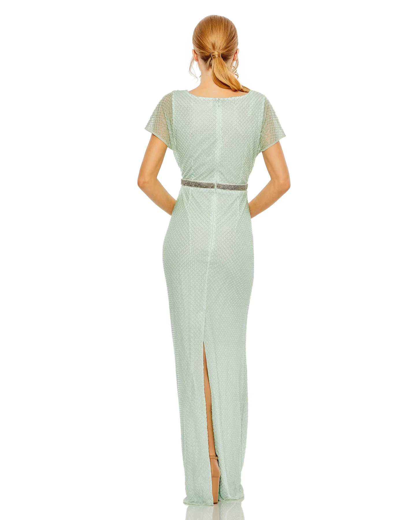 LONG SEQUIN EMBELLISHED CHIFFON EVENING SKIRT