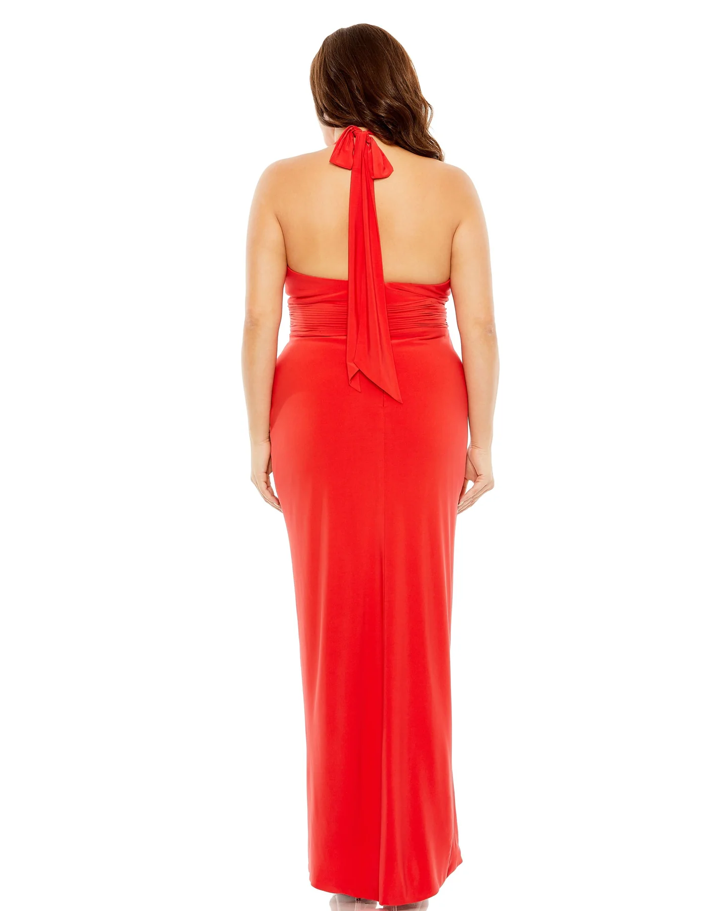HALTER TIE KEYHOLE DETAIL GOWN WITH SLIT