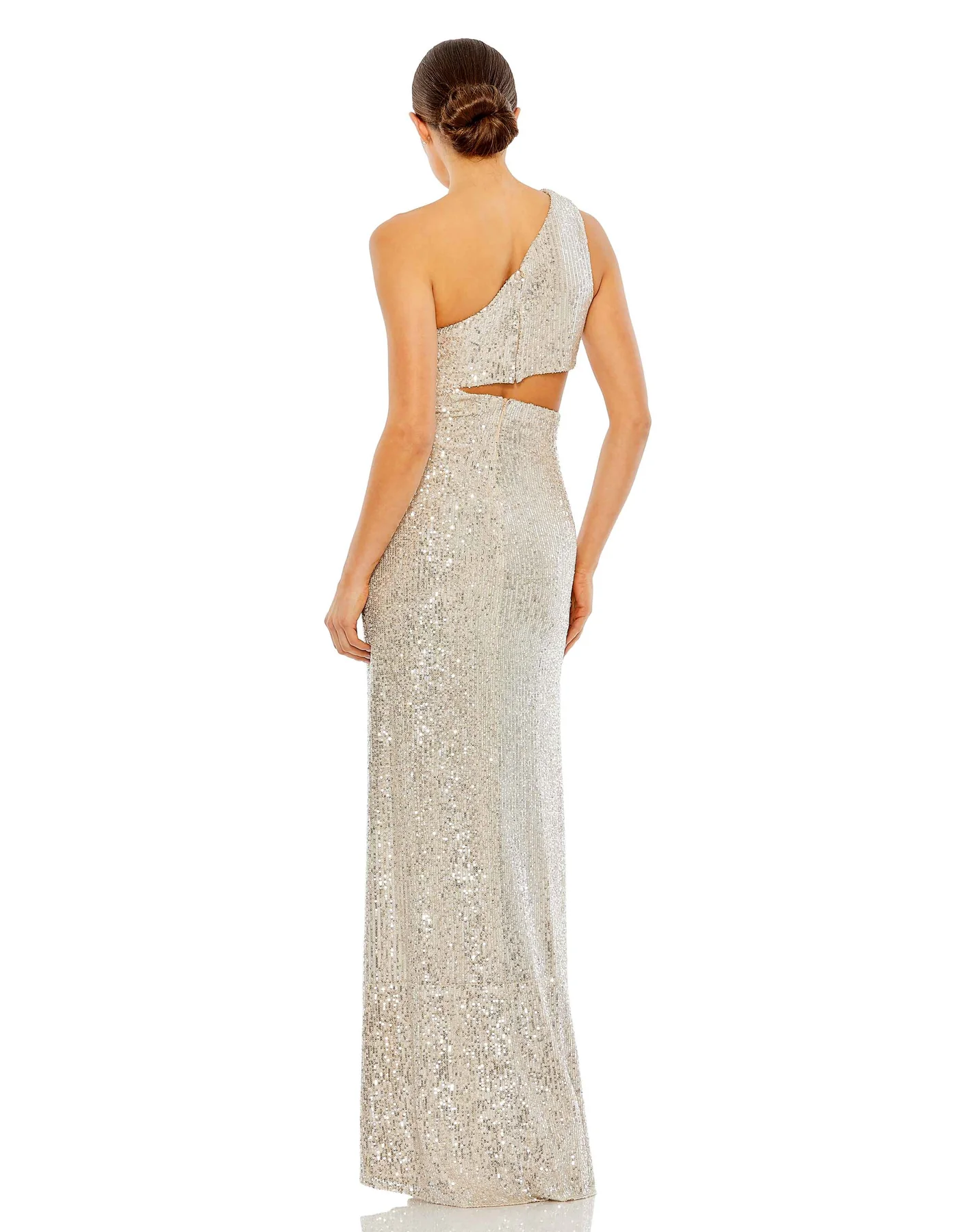 SEQUIN ONE SHOULDER CUT OUT GOWN