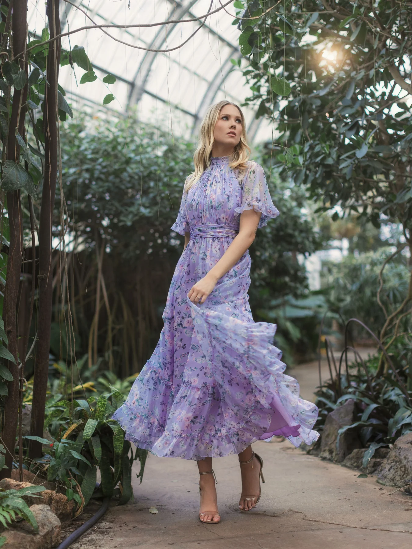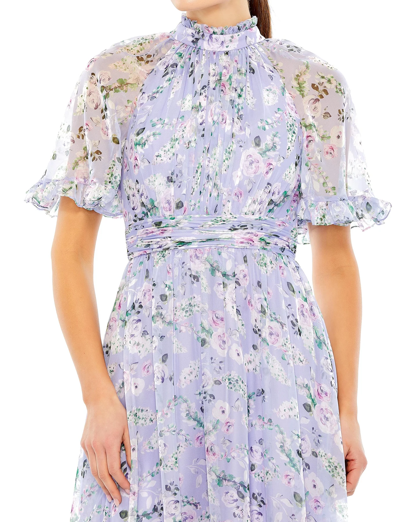 FLORAL PRINT HIGH NECK RAGLAN SLEEVE DRESS