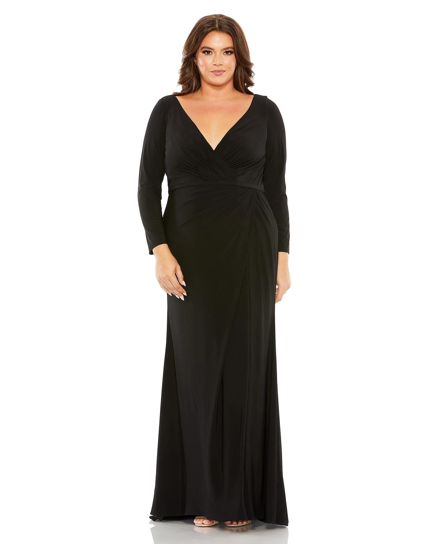 LONG SLEEVE V-NECK FAUX WRAP GOWN