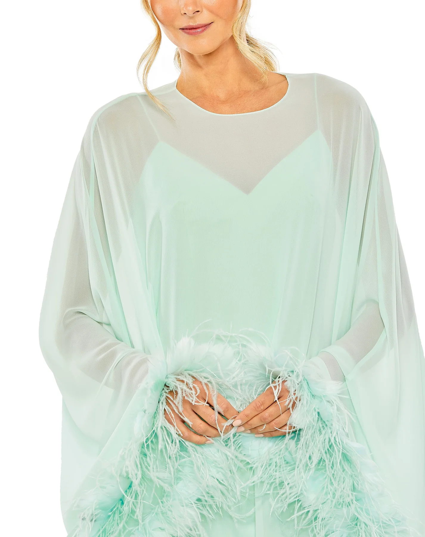 This trapeze feather trim mini dress is a captivating blend of glamor and playfulness. Its trapeze silhouette offers a flattering and airy fit, while the feather trim offers a touch of elegance. The perfect look for date night or special occasions, this dress is sure to make a statement wherever you go.
