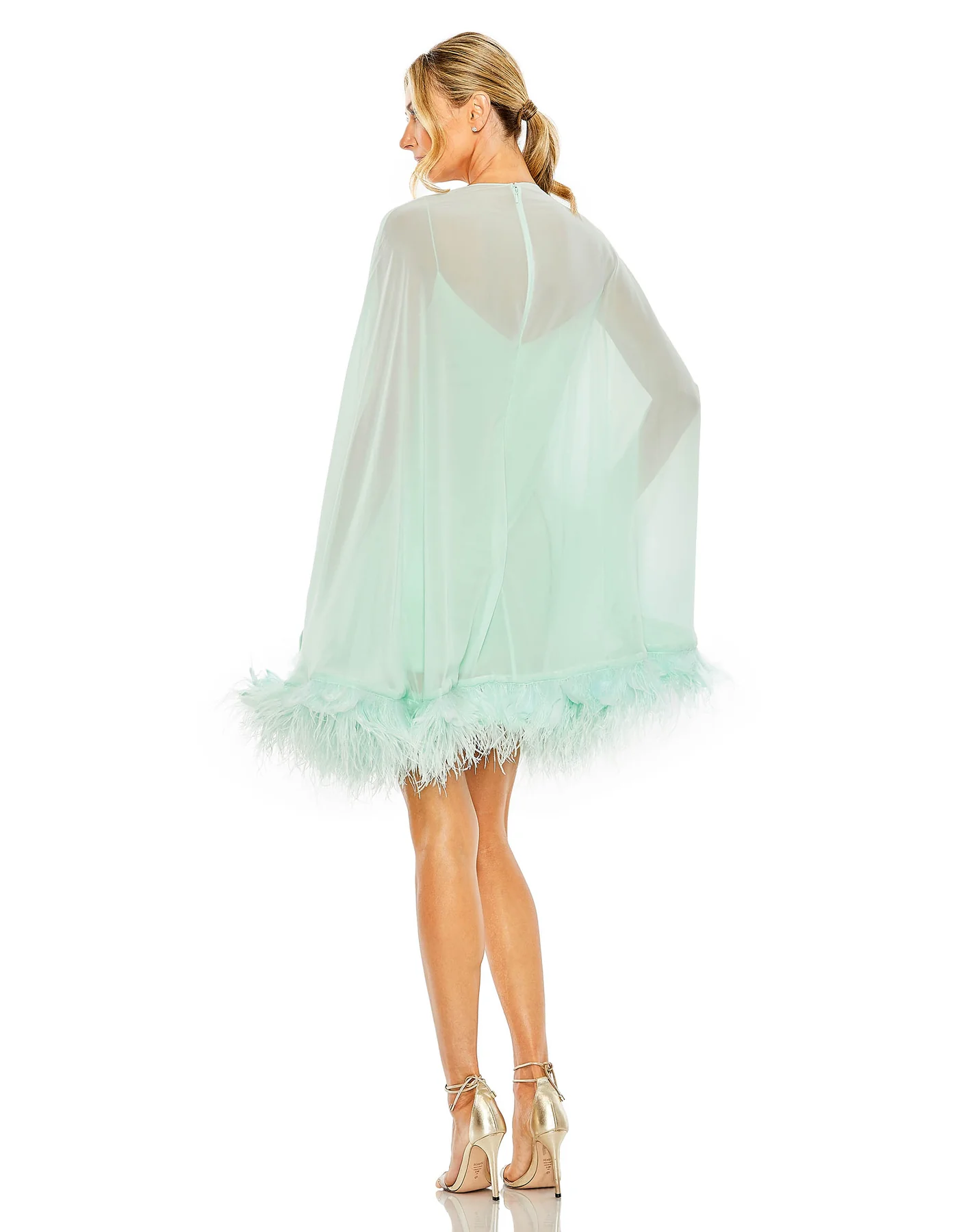 TRAPEZE FEATHER TRIM MINI DRESS