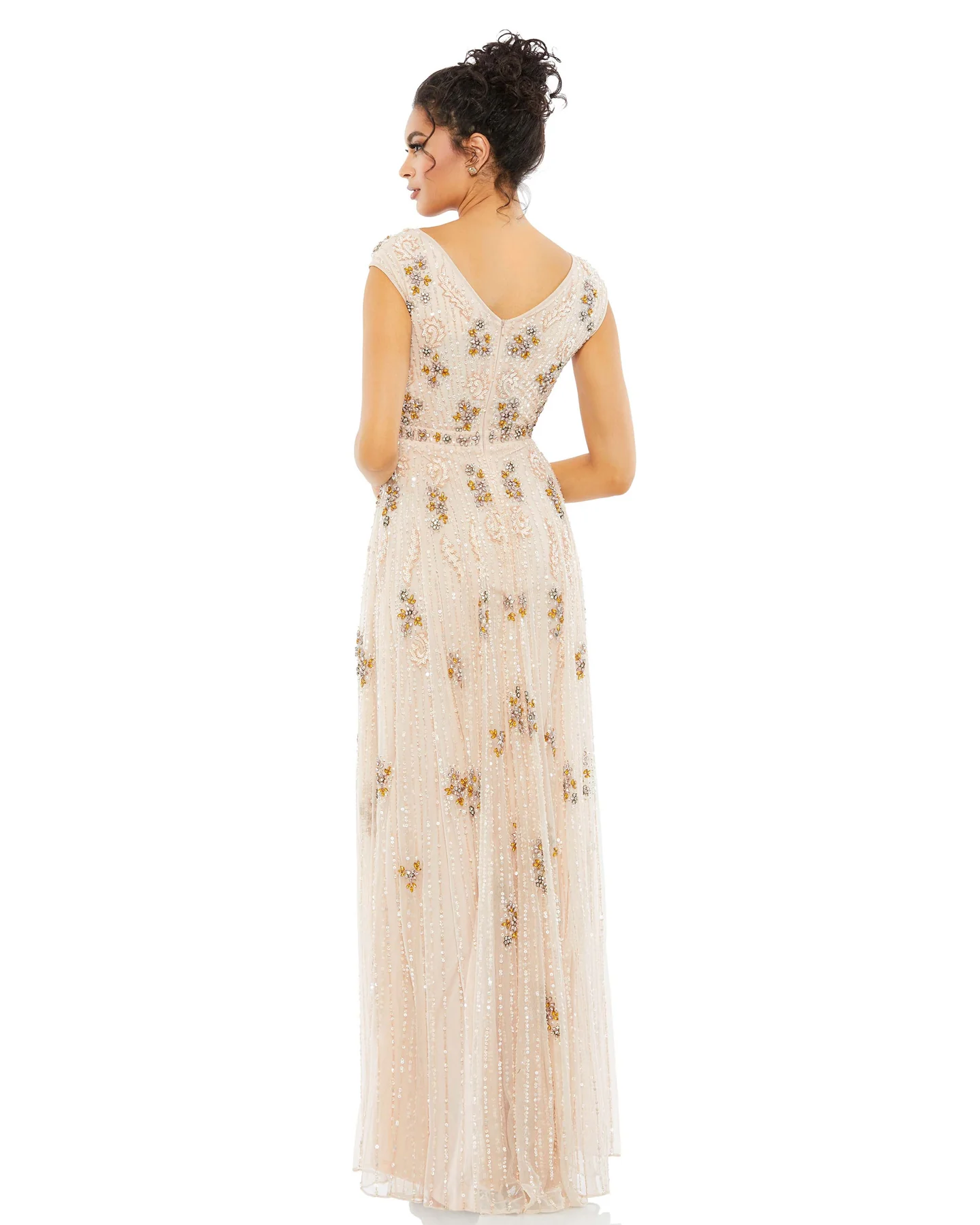 EMBELLISHED WRAP OVER CAP SLEEVE A-LINE GOWN