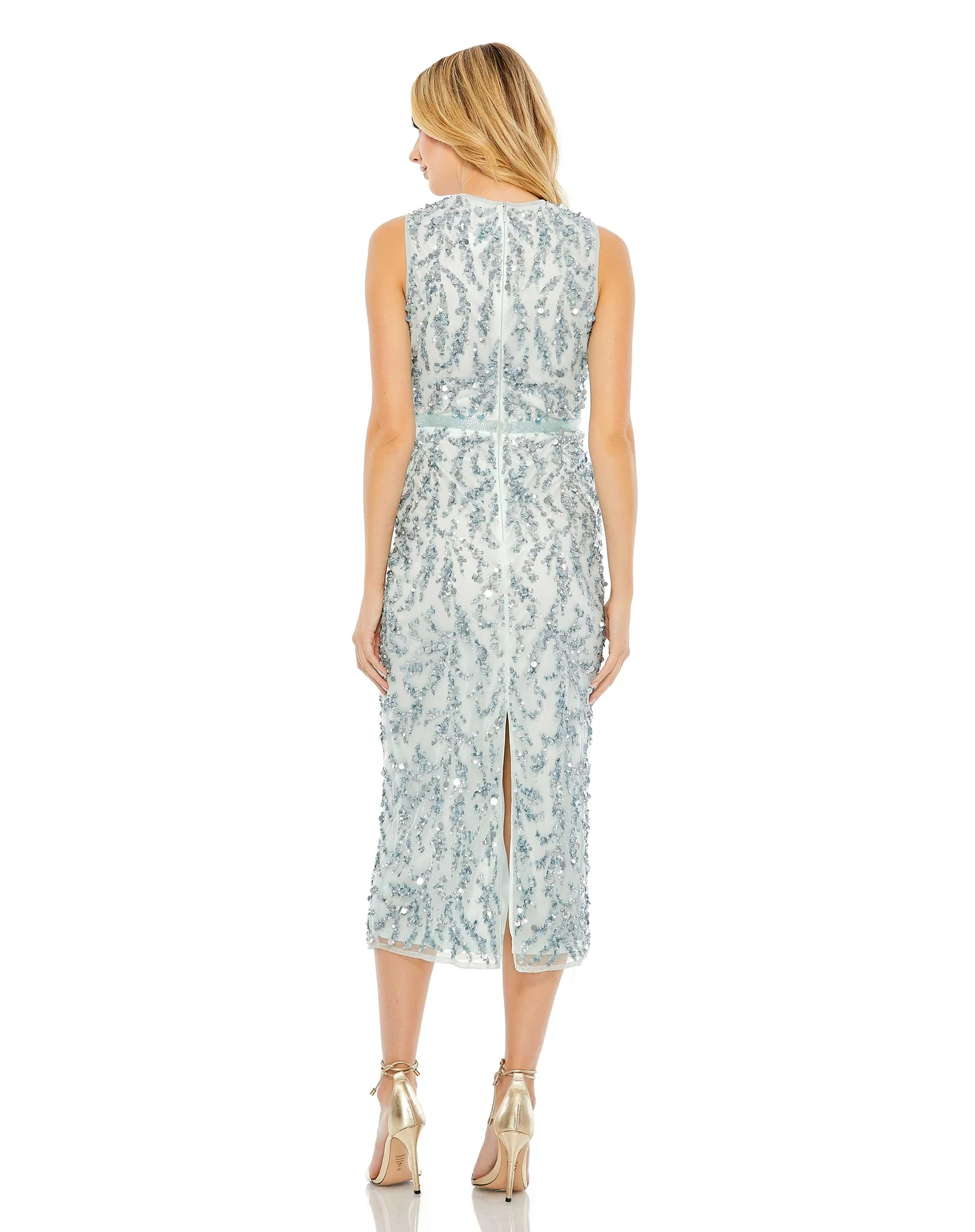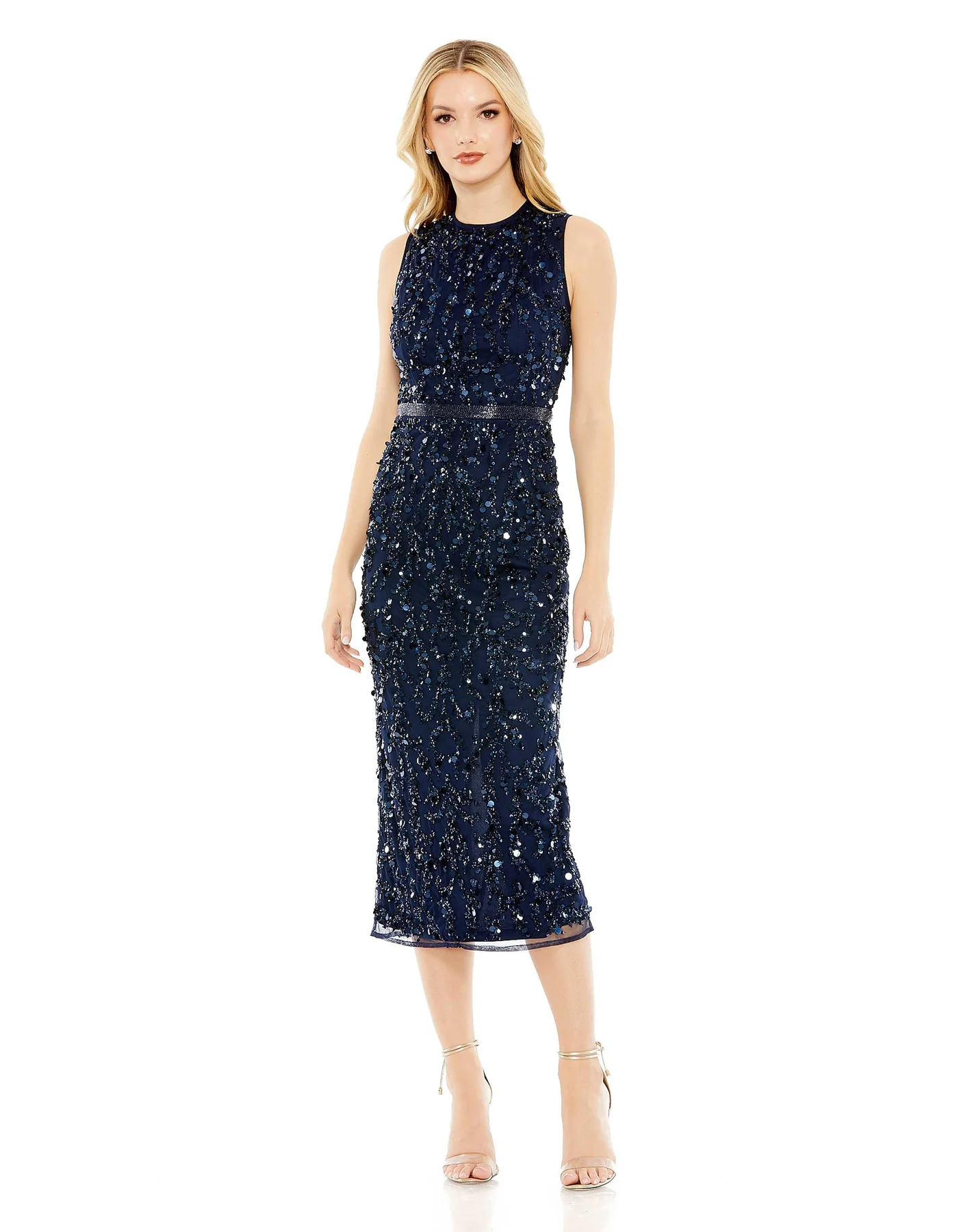 SEQUINED SLEEVELESS HIGH NECK MIDI DRESS