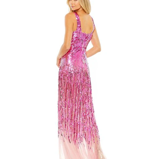 SEQUINED CROSS FRONT MESH DETAILED GOWN