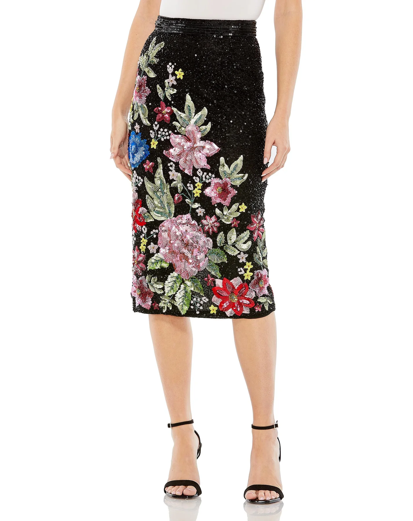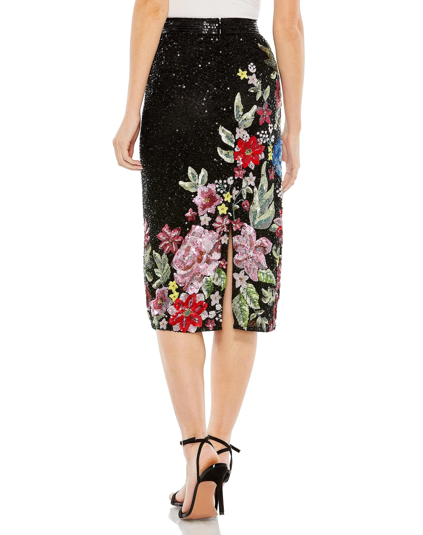 - Floral Sequin Embellished Column Skirt
