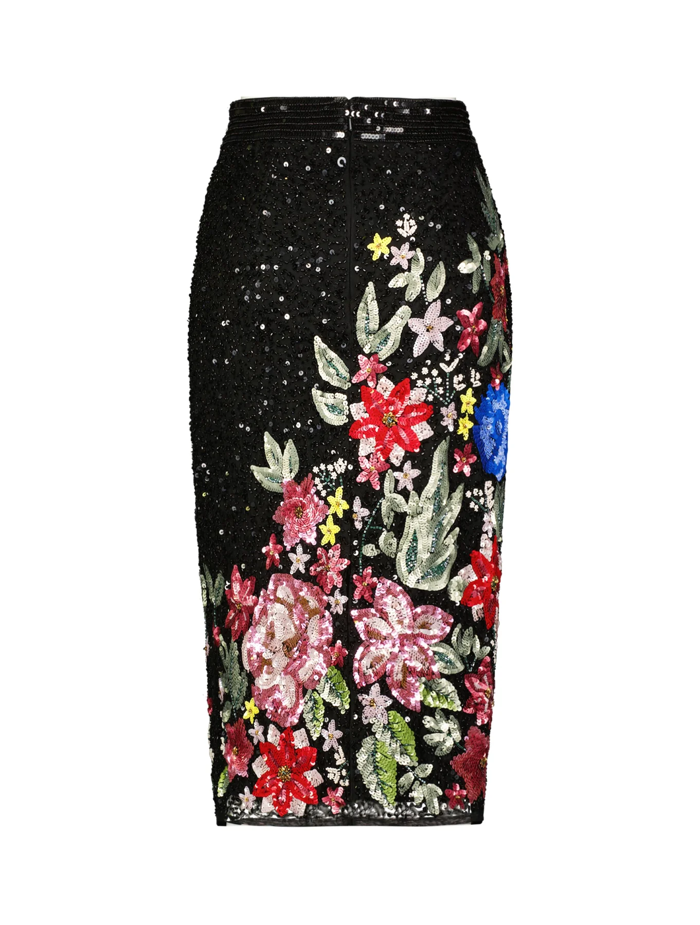 FLORAL SEQUIN EMBELLISHED KNEE LENGTH COLUMN SKIRT