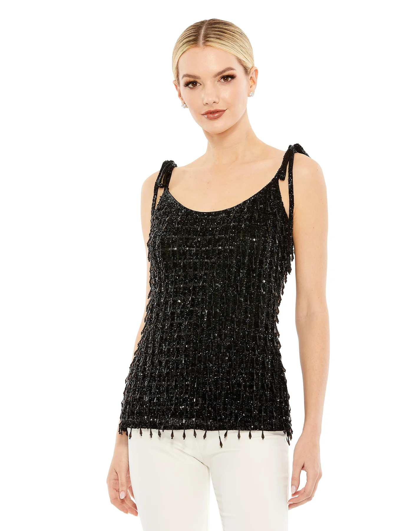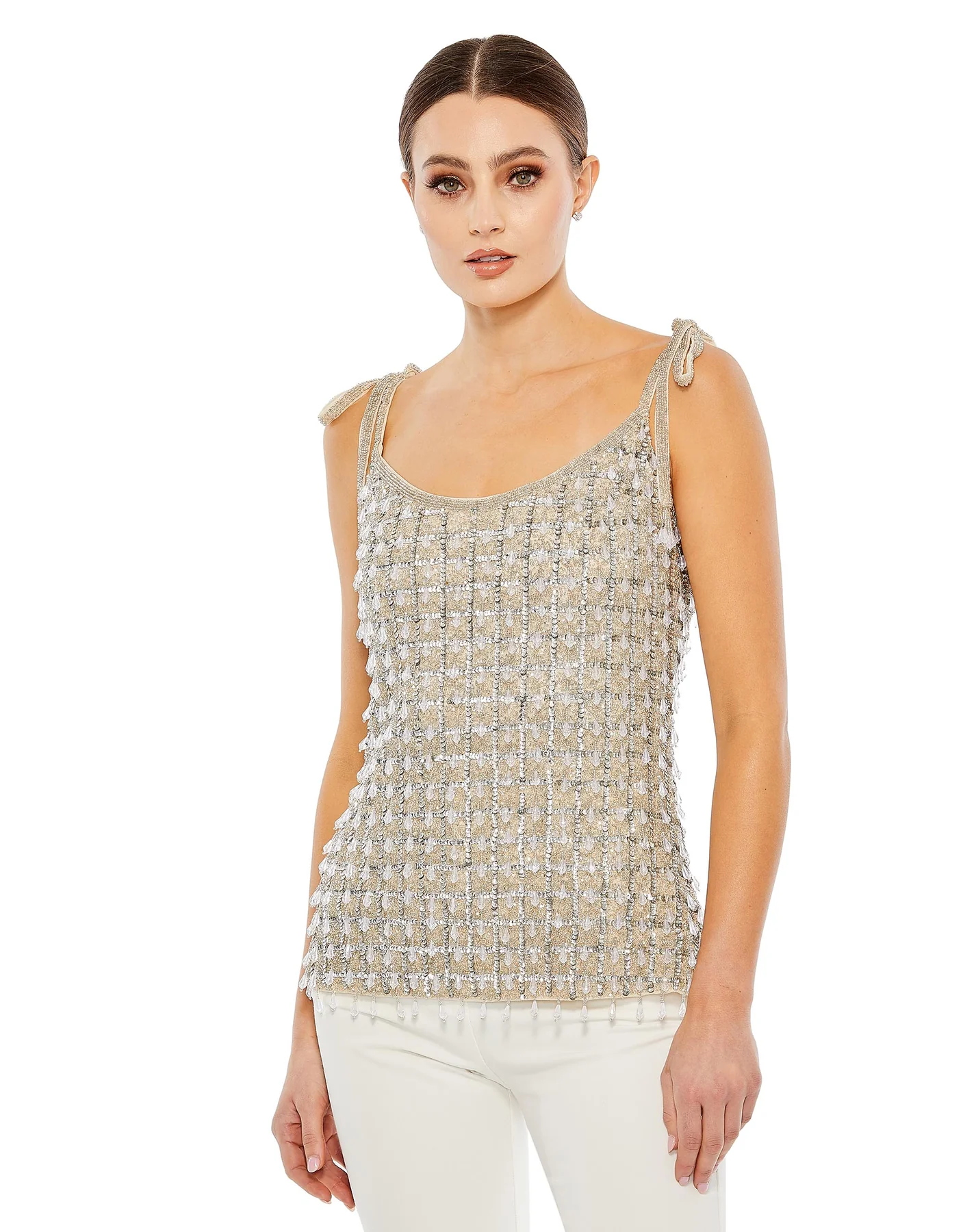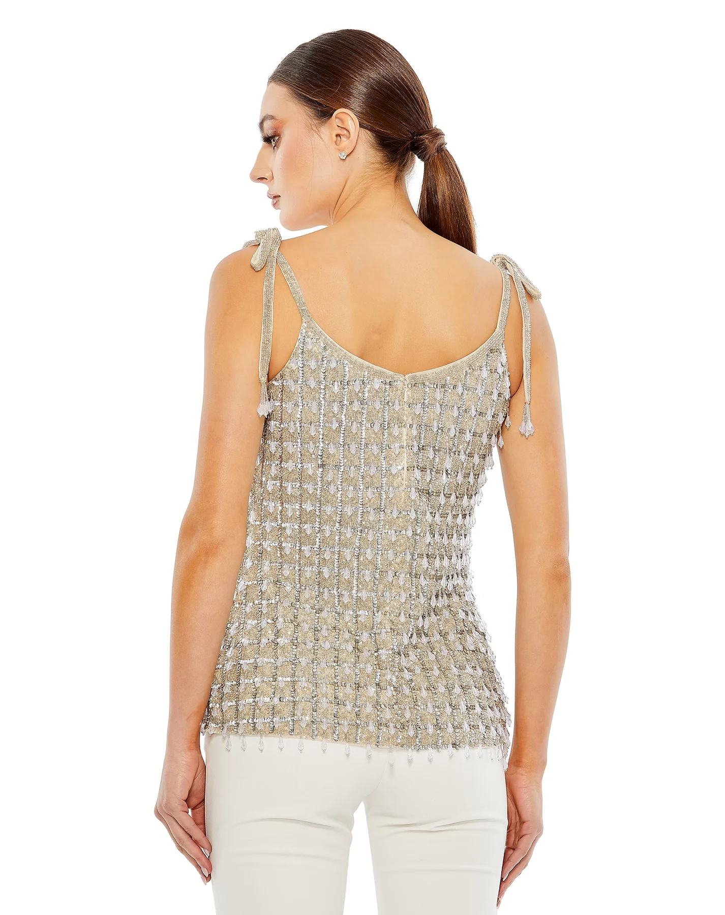 CRYSTAL EMBELLISHED SOFT TIE CAMI TOP