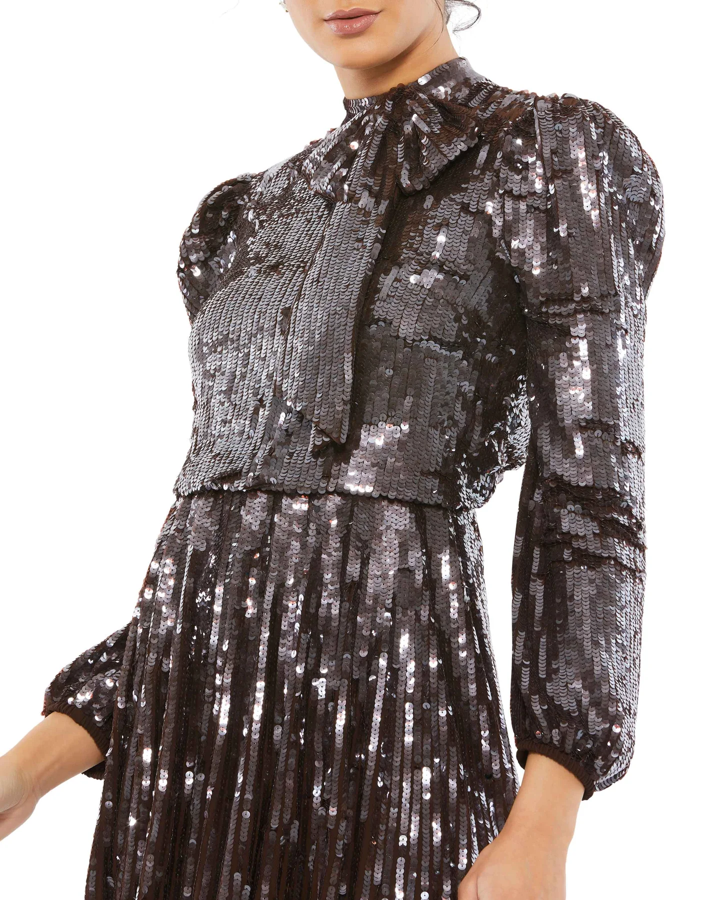 - Statement bow featured along neckline
