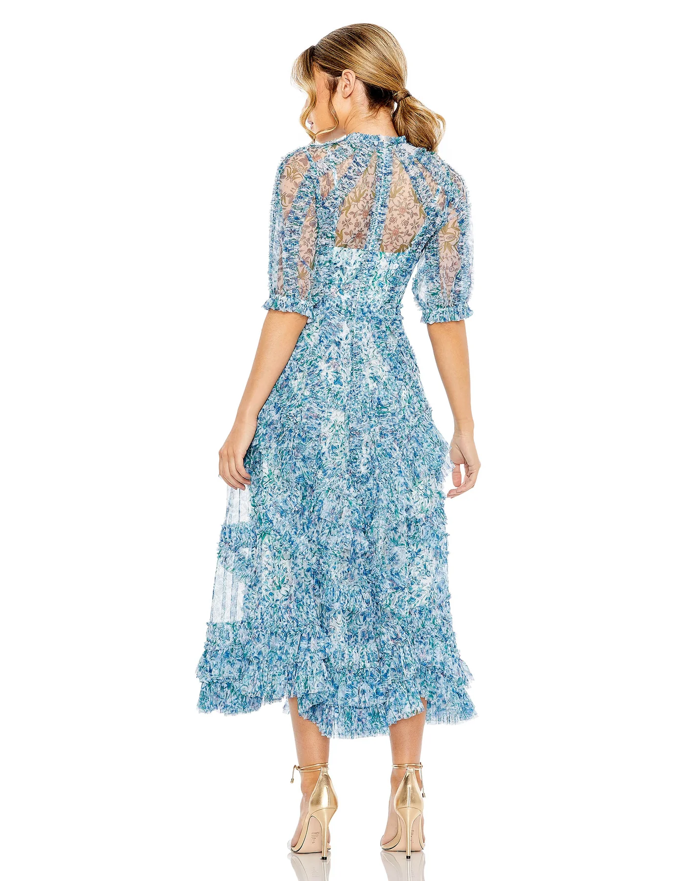 MESH PUFF SLEEVE FLORAL PRINT DRESS
