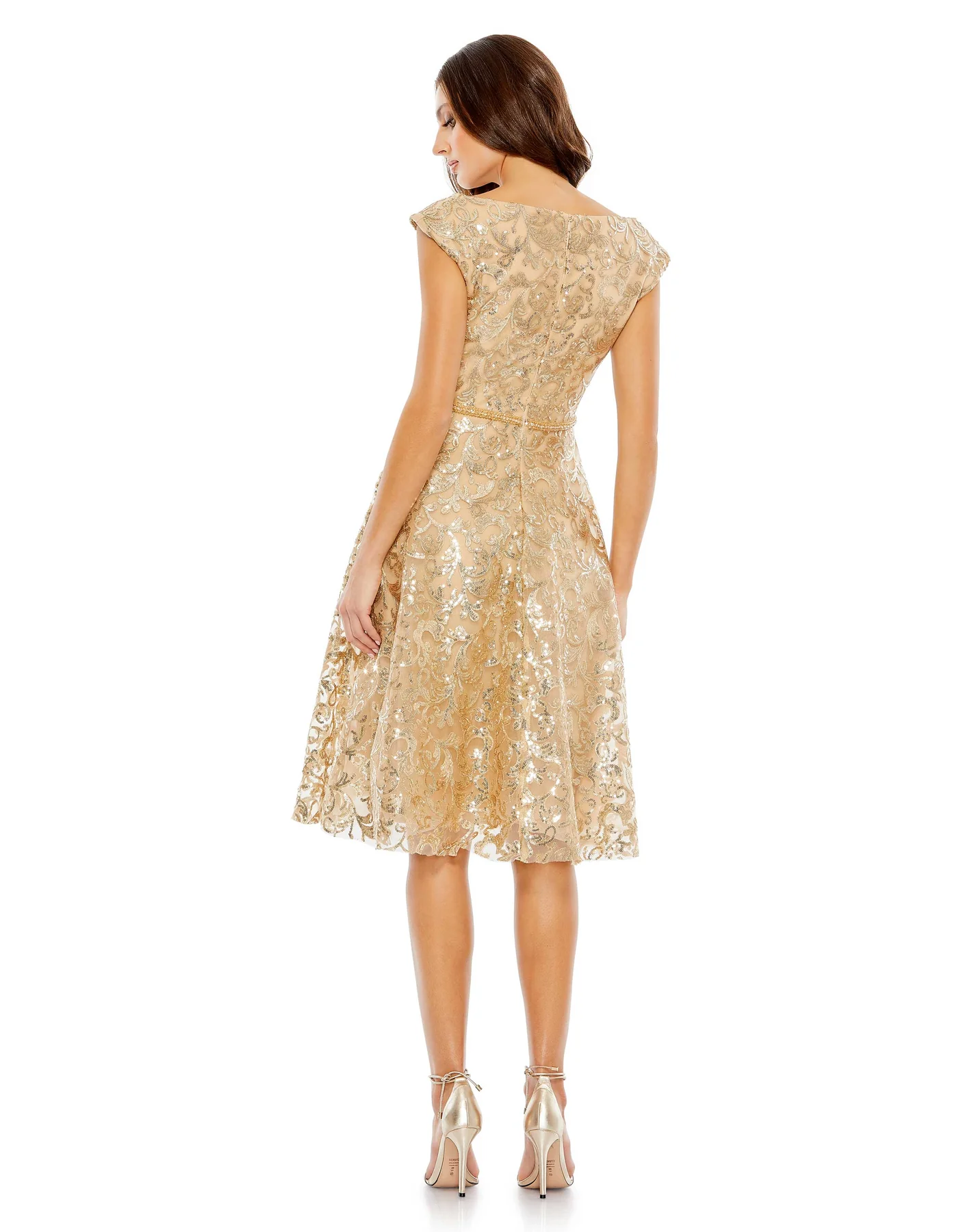 SEQUINED V NECK CAP SLEEVE DRESS