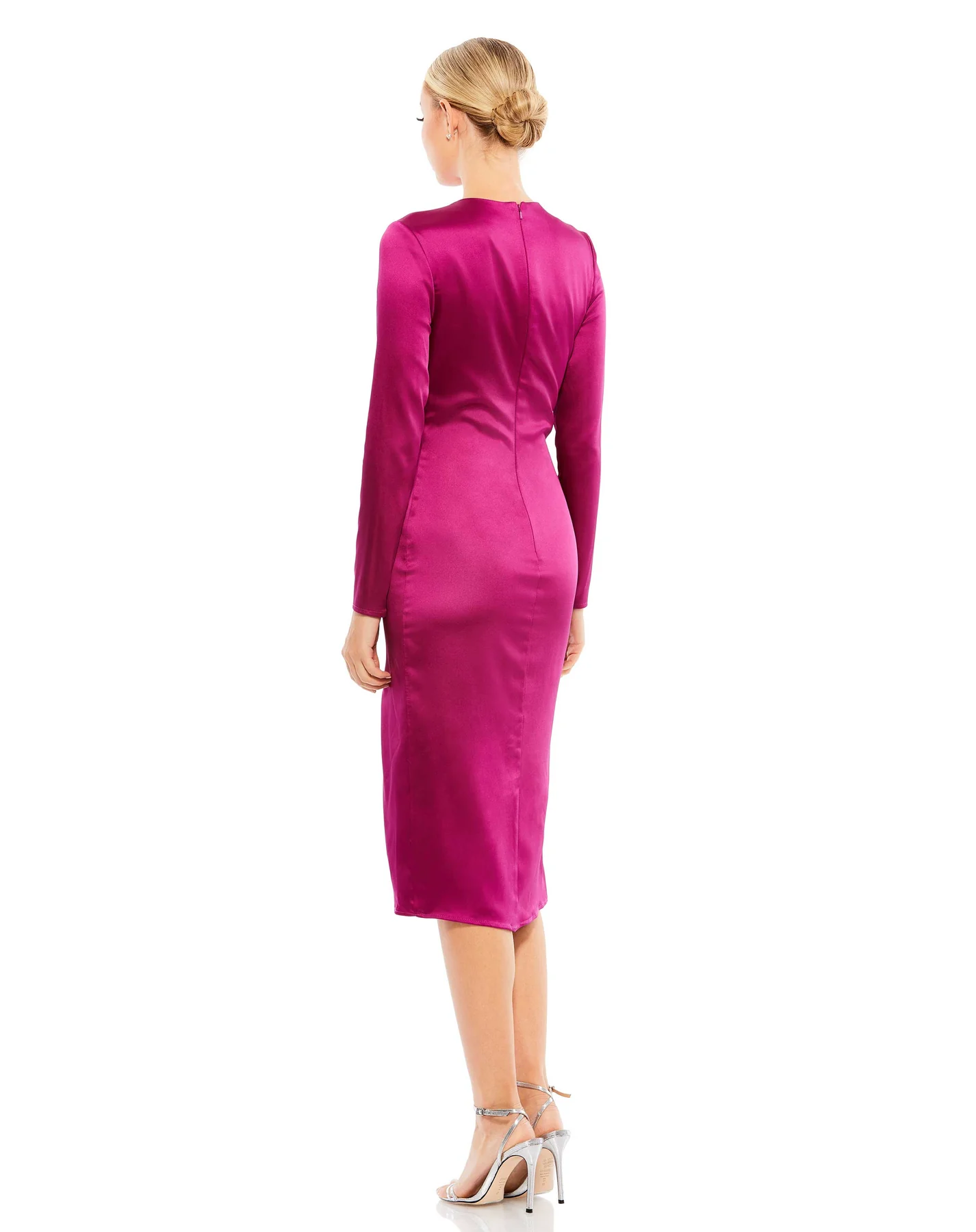 SIDE TWIST LONG SLEEVE SATIN MIDI DRESS