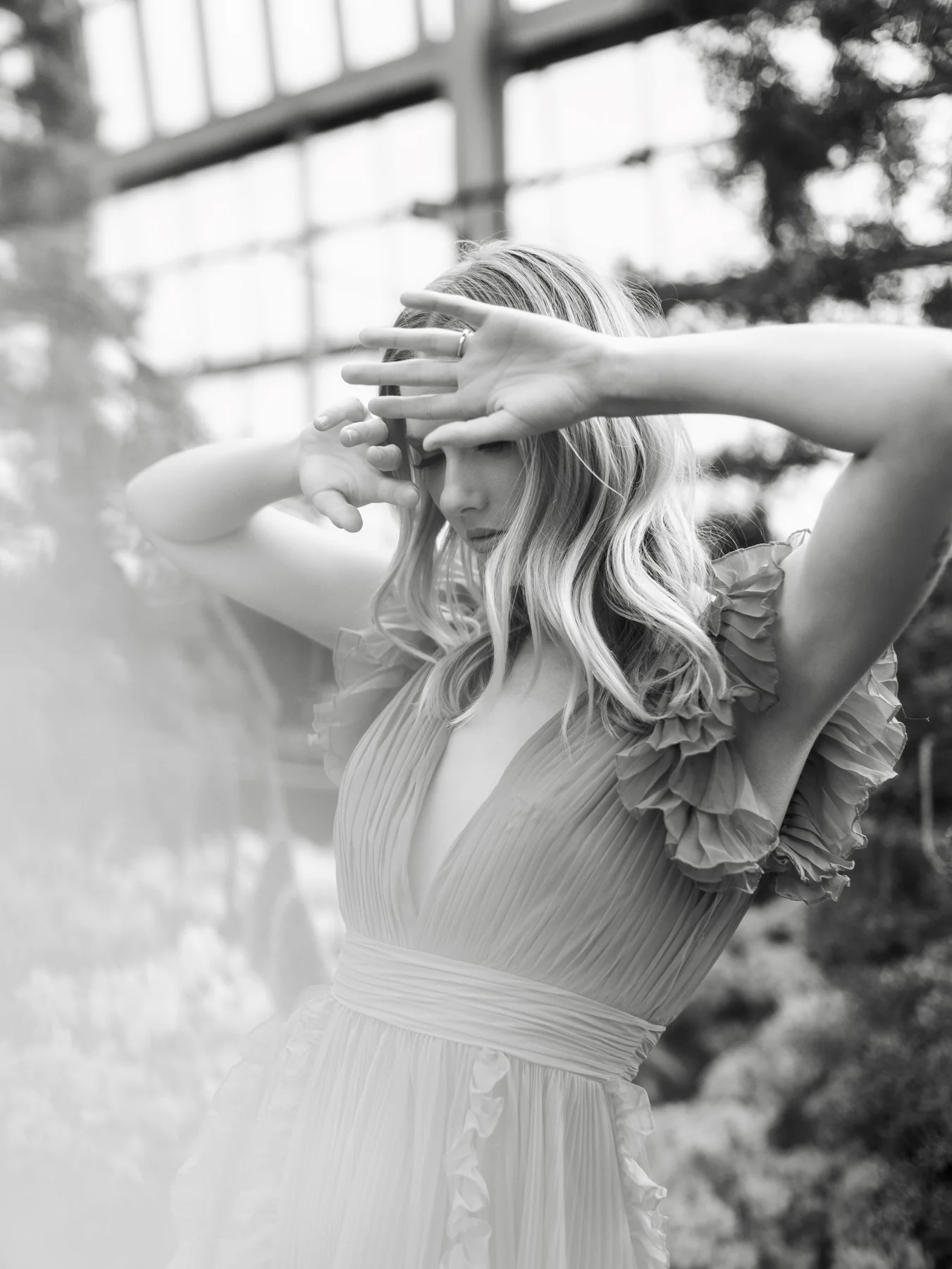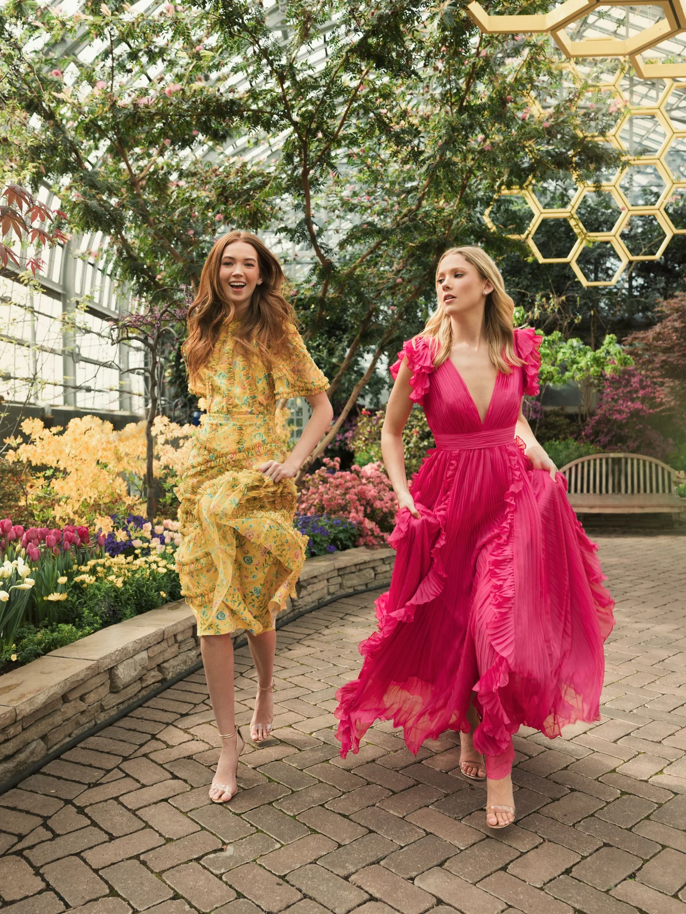 PLEATED RUFFLE CAP SLEEVE FLOWY A LINE GOWN