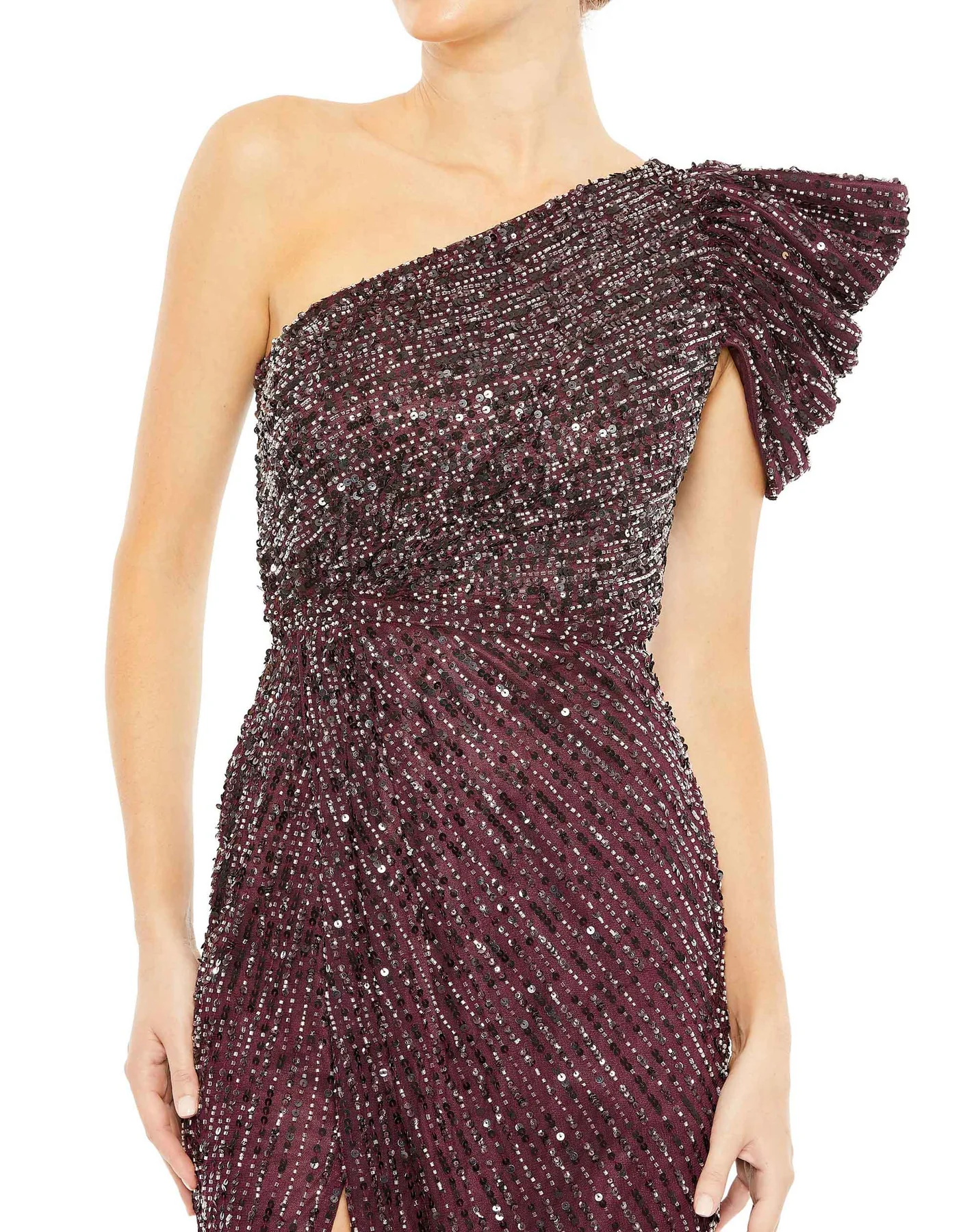 - Asymmetrical one-shoulder neckline
