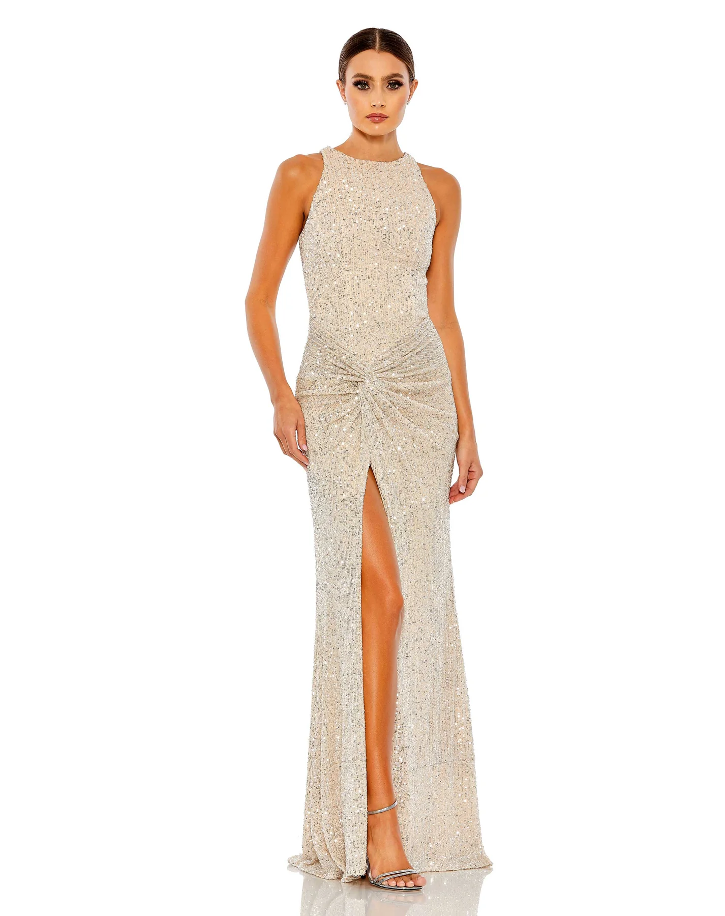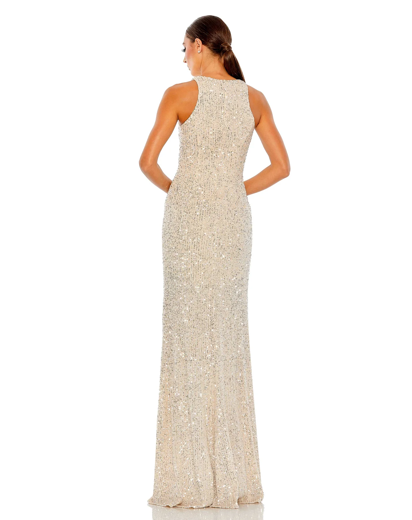 SEQUINED HIGH NECK SIDE KNOT GOWN