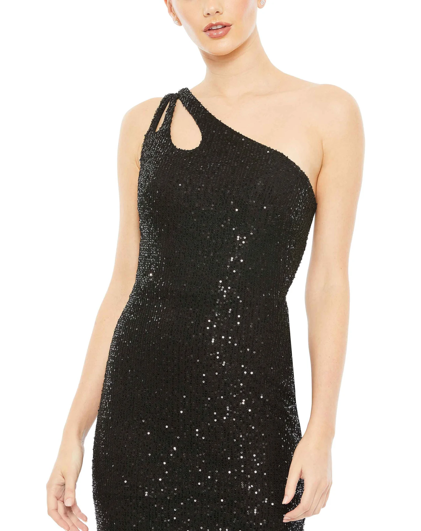 SEQUINED STRAPPY ONE SHOULDER COLUMN GOWN