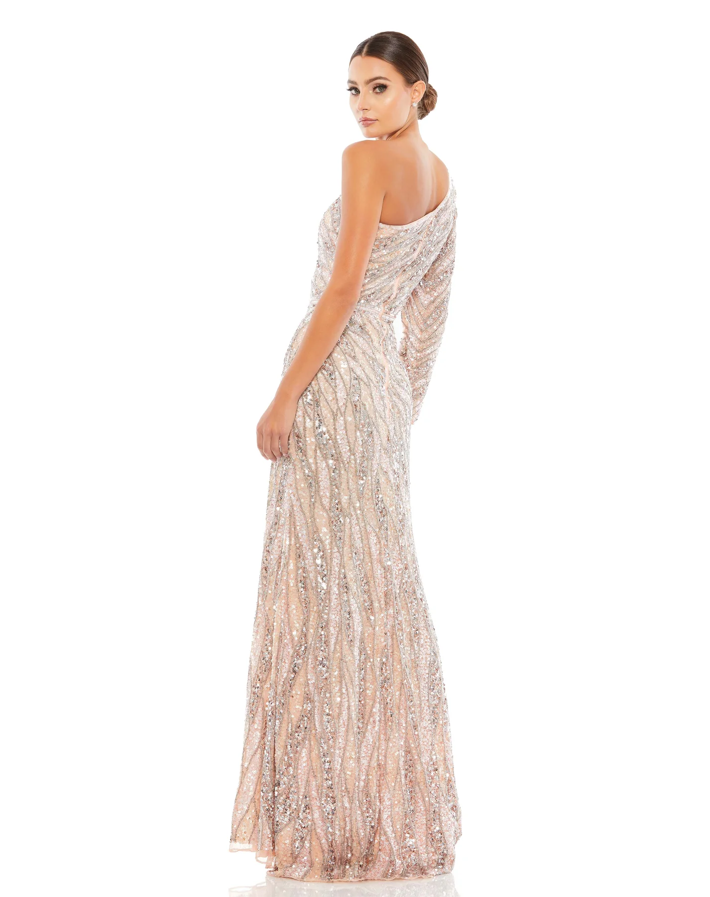 EMBELLISHED ONE SLEEVE GOWN W/ SEQUIN BELT