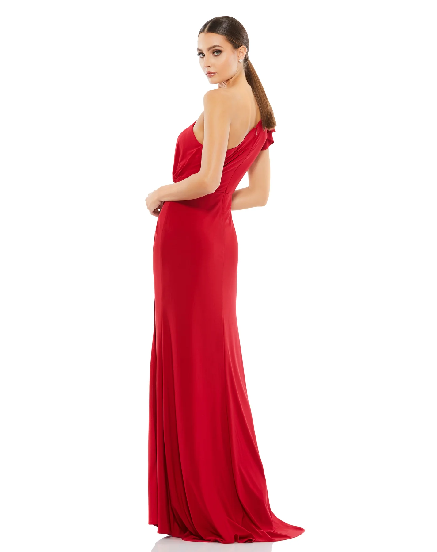 RUFFLED ONE SHOULDER DRAPED GOWN