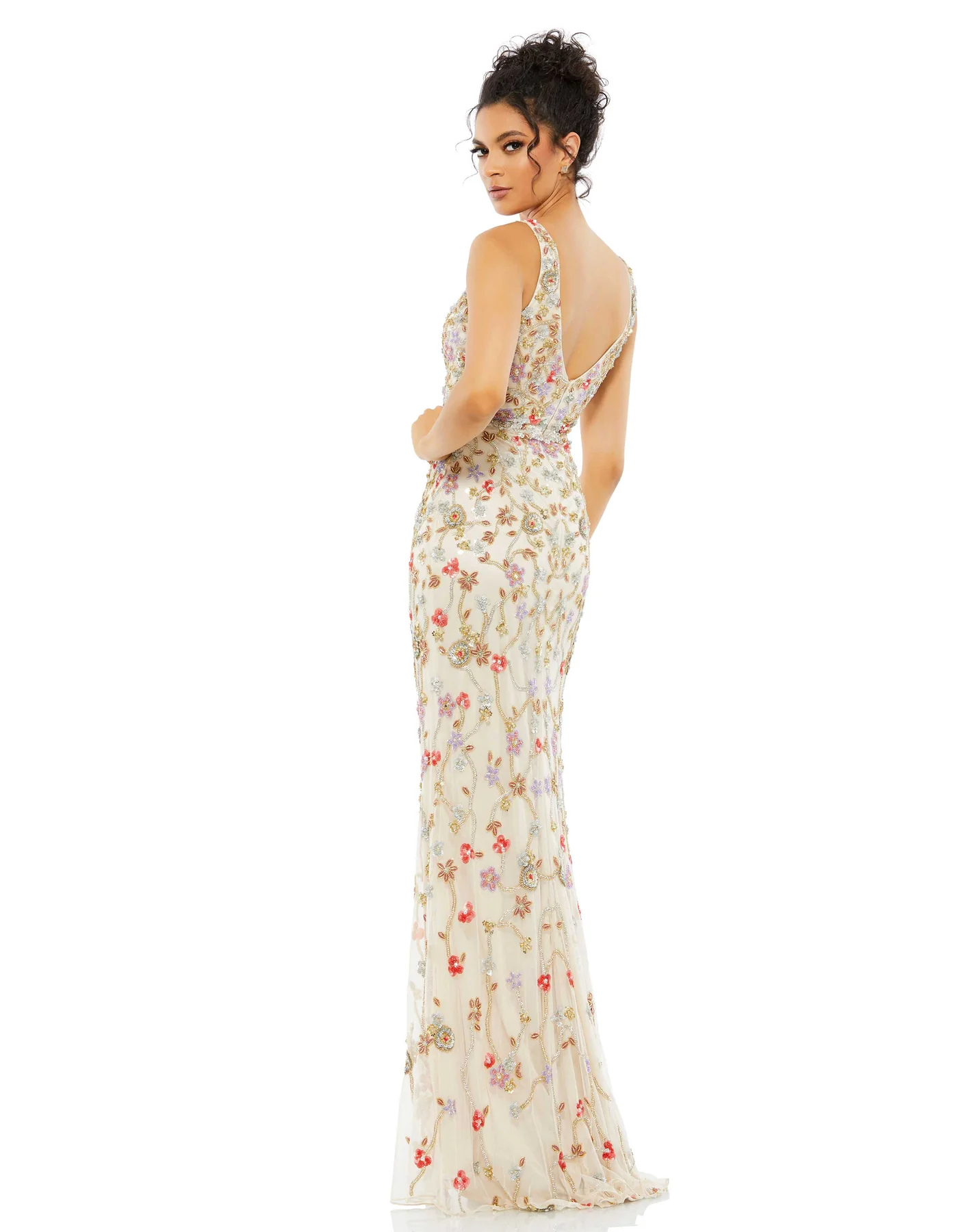 A gorgeous pick for prom or any black-tie event, the dreamy dress is styled with a deep neckline with an invisible panel of mesh, tapered straps and an elegant V-cut back.