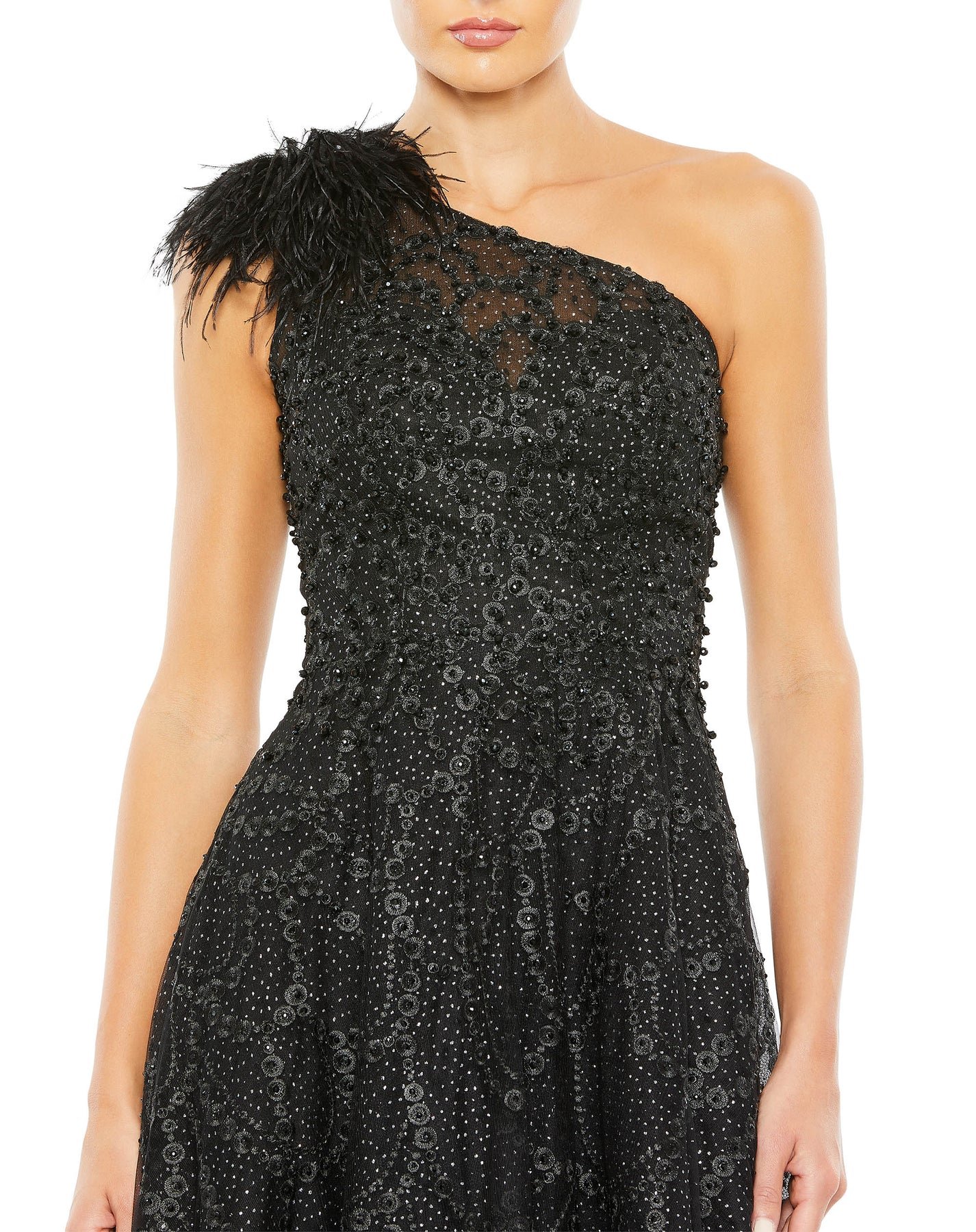 EMBELLISHED ONE SHOULDER A LINE GOWN