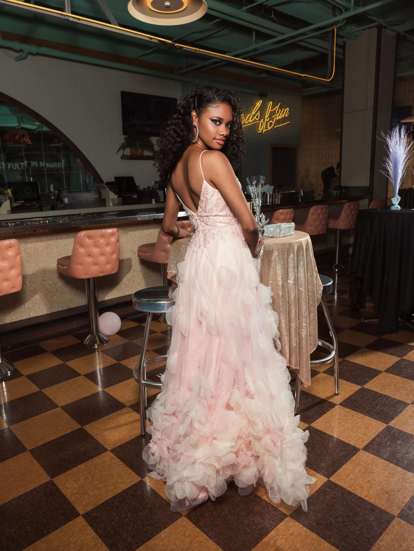 Looking for a dress like no other? The prettiest gown you can imagine, this high-low beauty is created with a baroque-embroidered bodice and flirty skirt layered in lace and satin topped with larger-than-life chiffon petals and blooms. Wear it with minimalist sandals to give the detail the attention it deserves.
