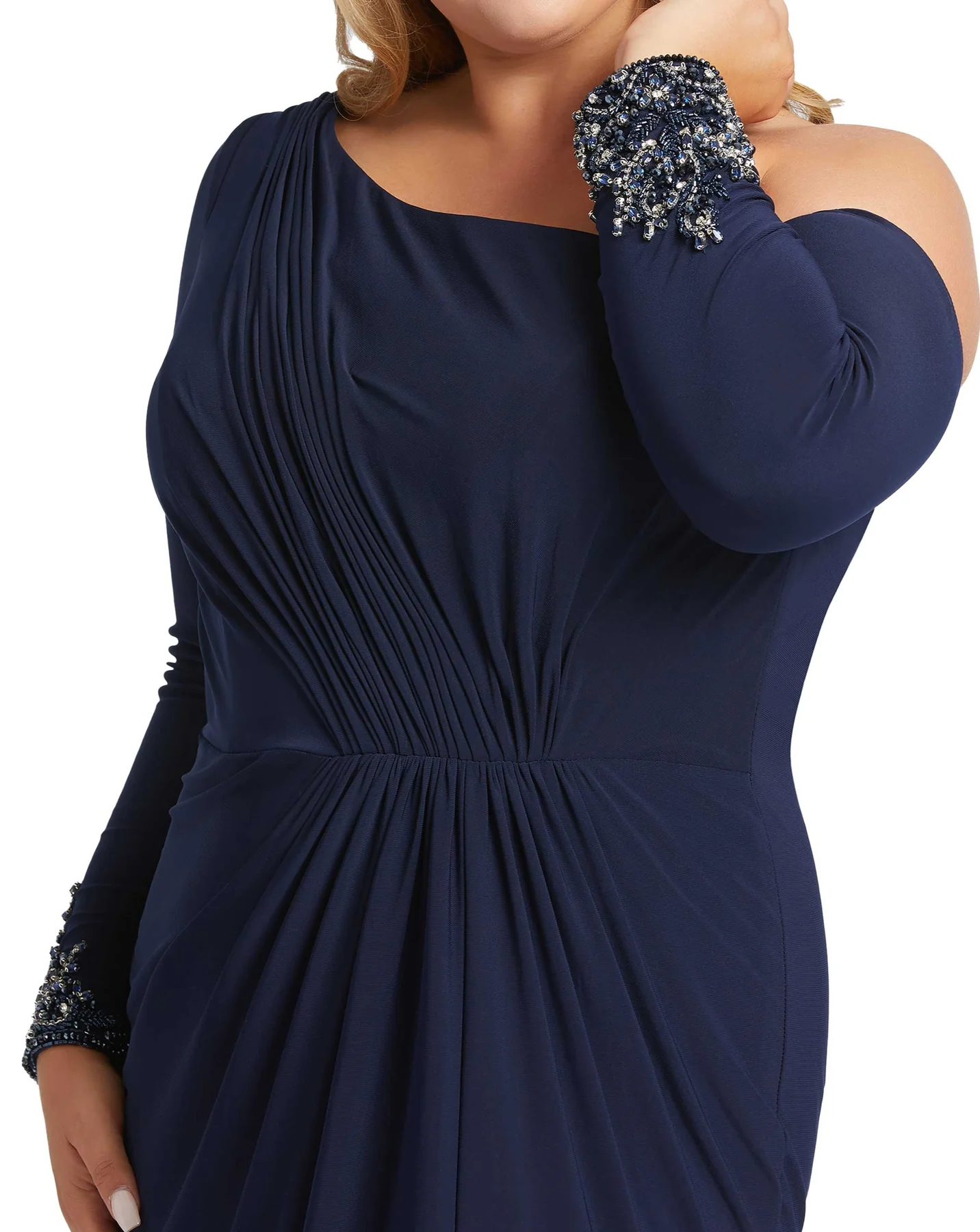 ONE SLEEVE/LONG SLEEVE BEADED DETAIL WRIST SLIT GO
