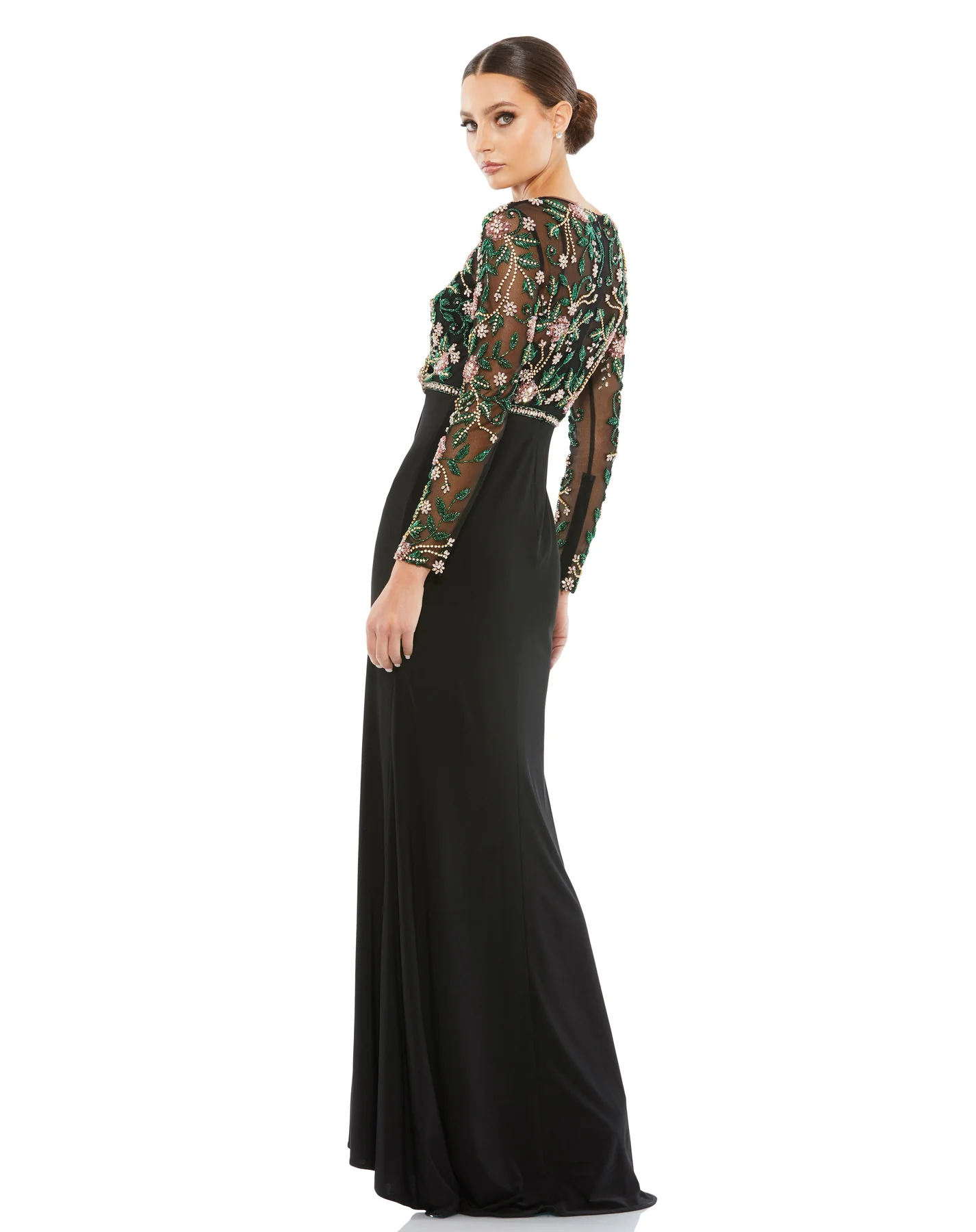 BEADED ILLUSION HIGH NECK TRUMPET GOWN
