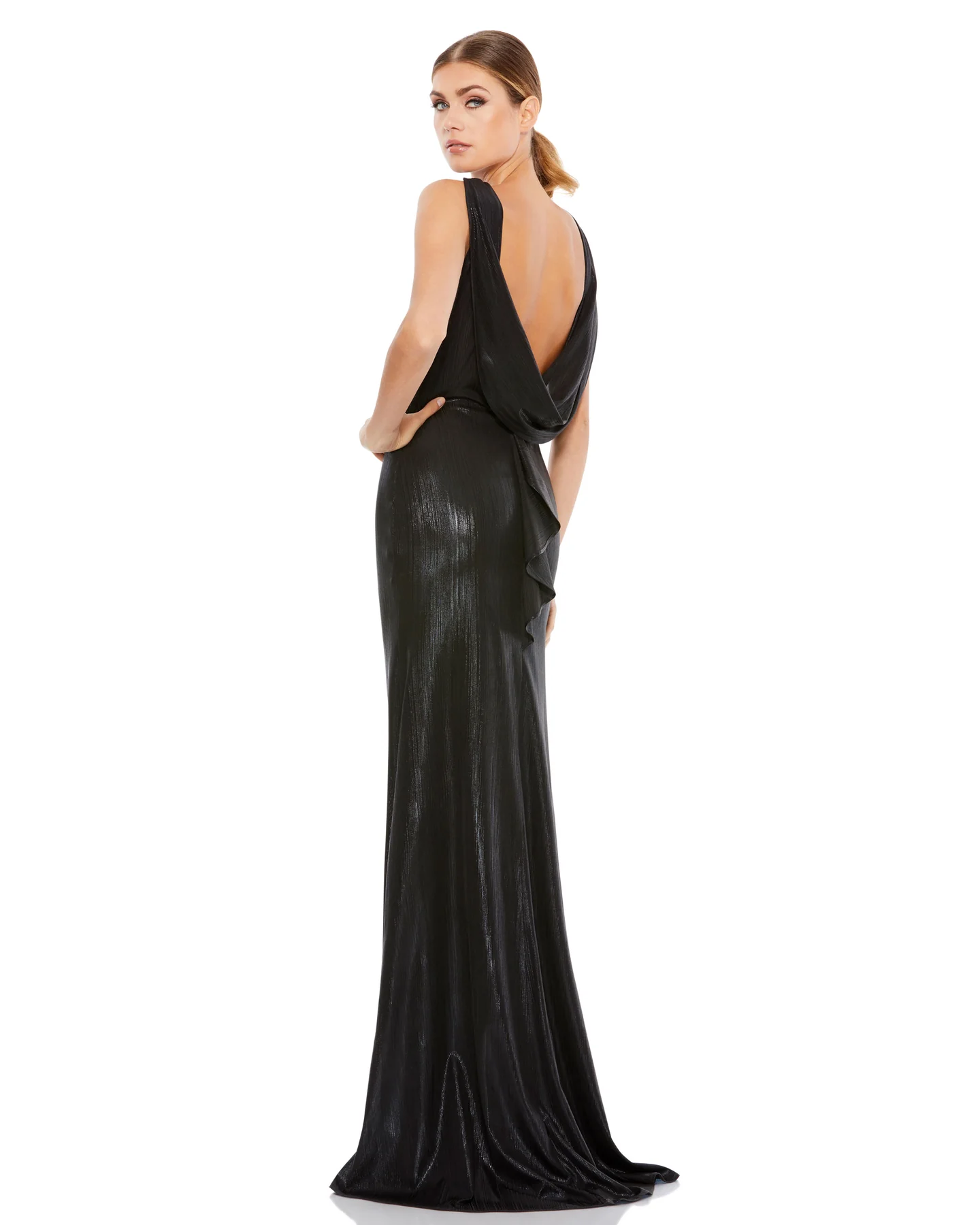 METALLIC COWL BACK COLUMN GOWN
