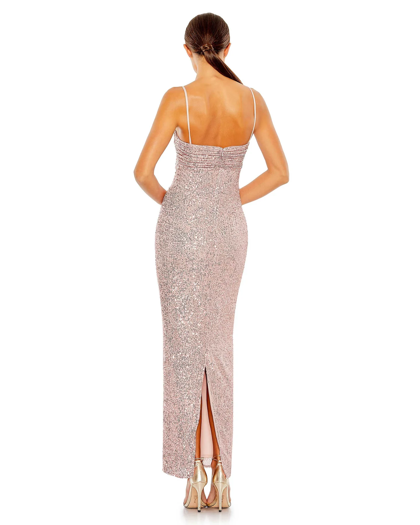 Ieena for Mac Duggal Sequined Mesh Overlay Fabric; 100% polyester liningFully lined Sweetheart neckline