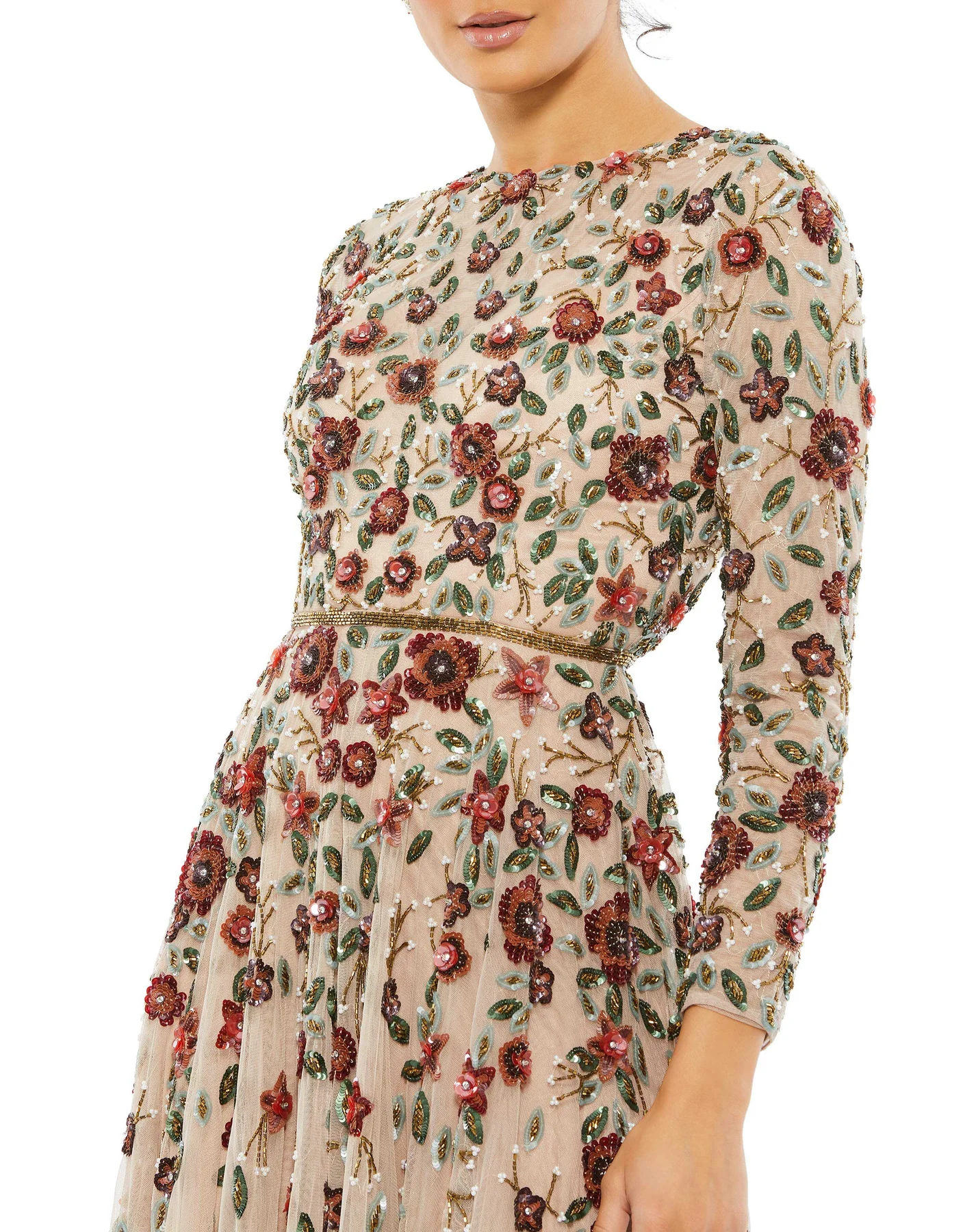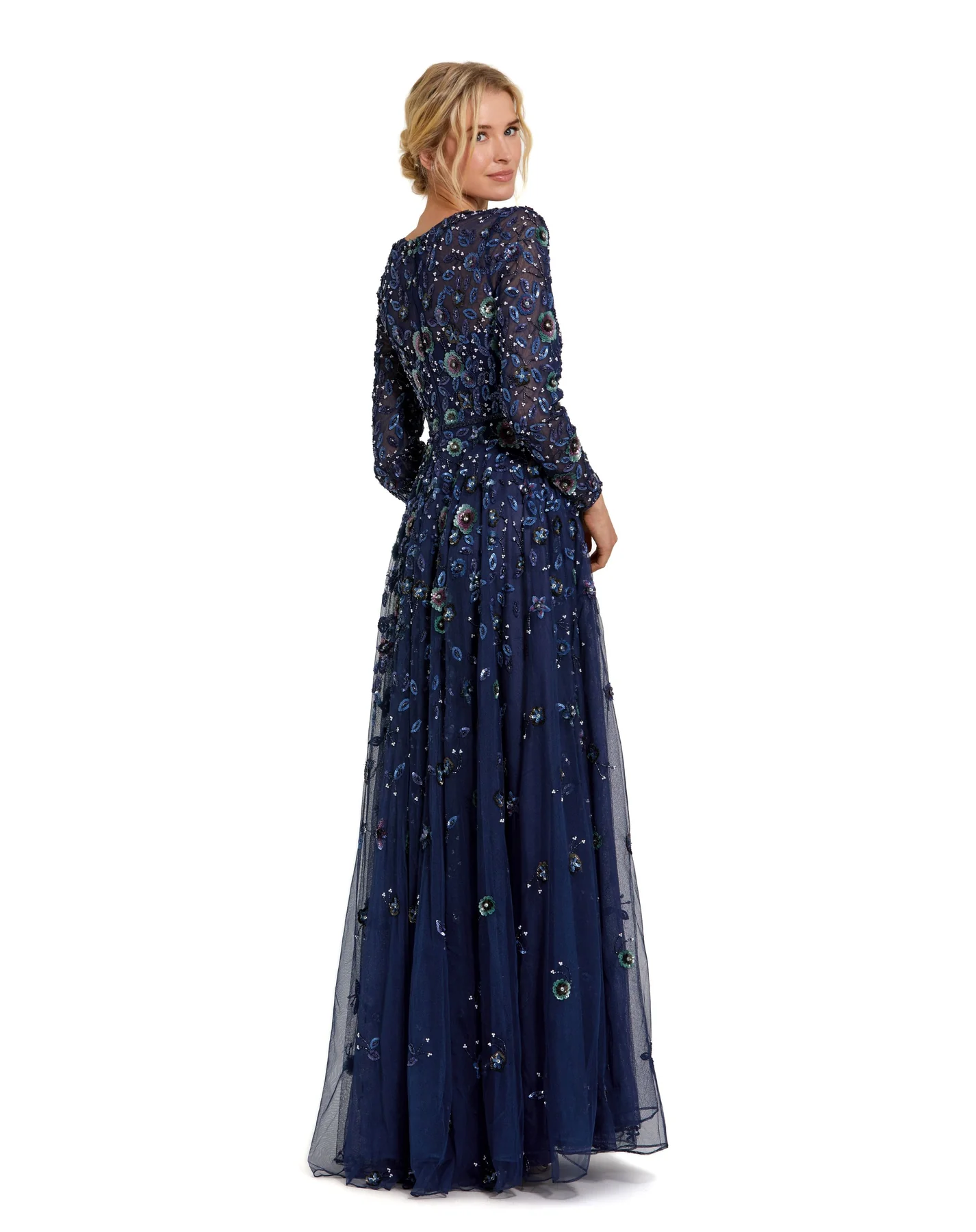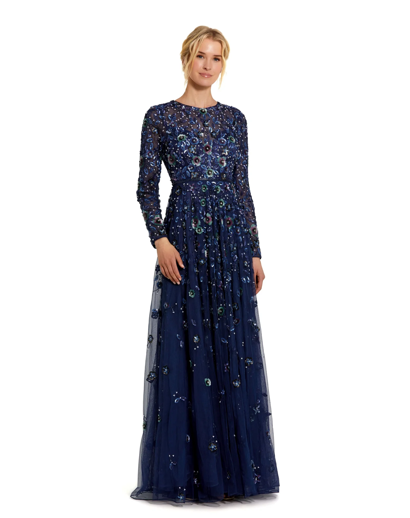 EMBELLISHED HIGH NECK LONG SLEEVE A LINE GOWN