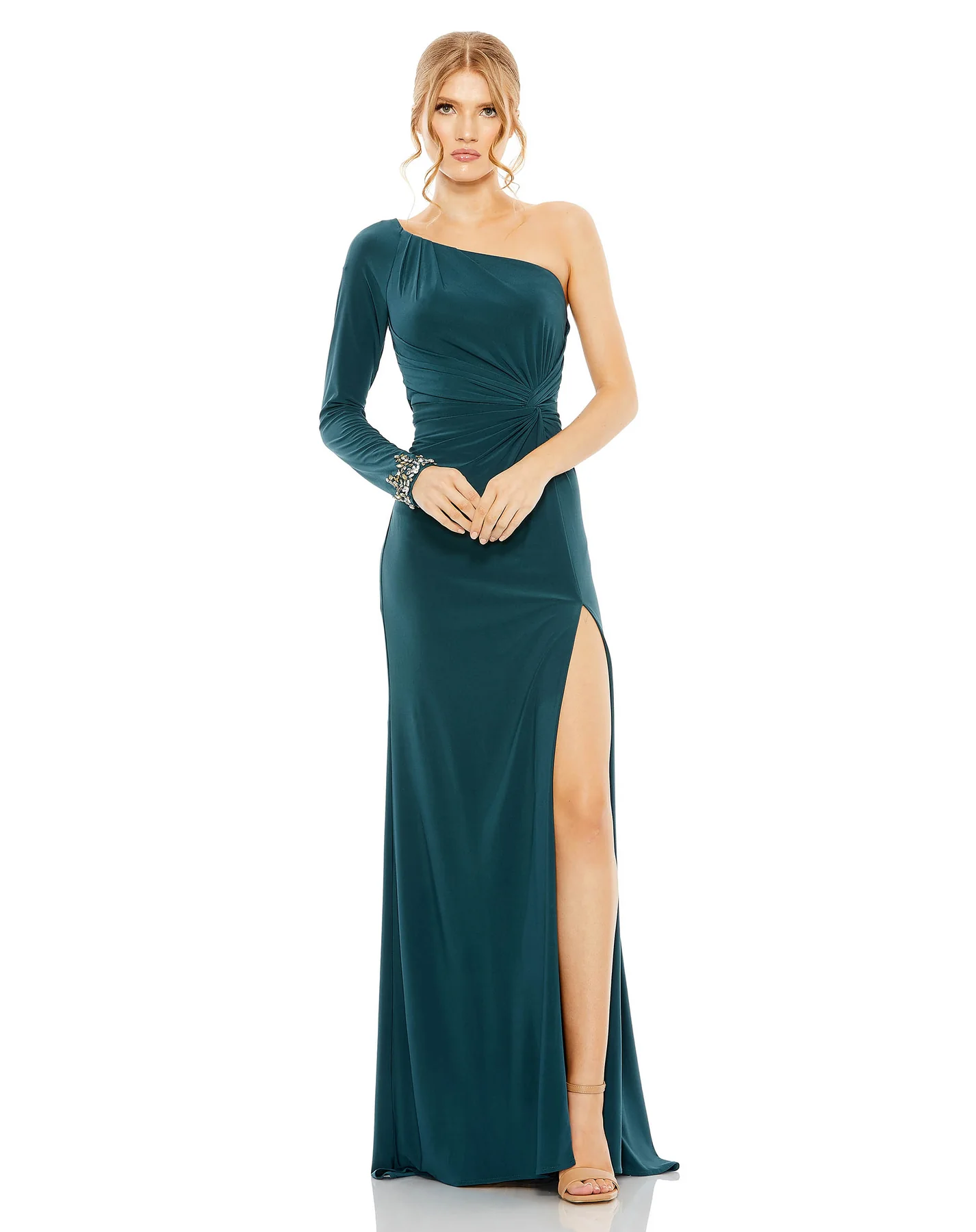 ONE SLEEVE BEADED CUFF SIDE TWIST GOWN