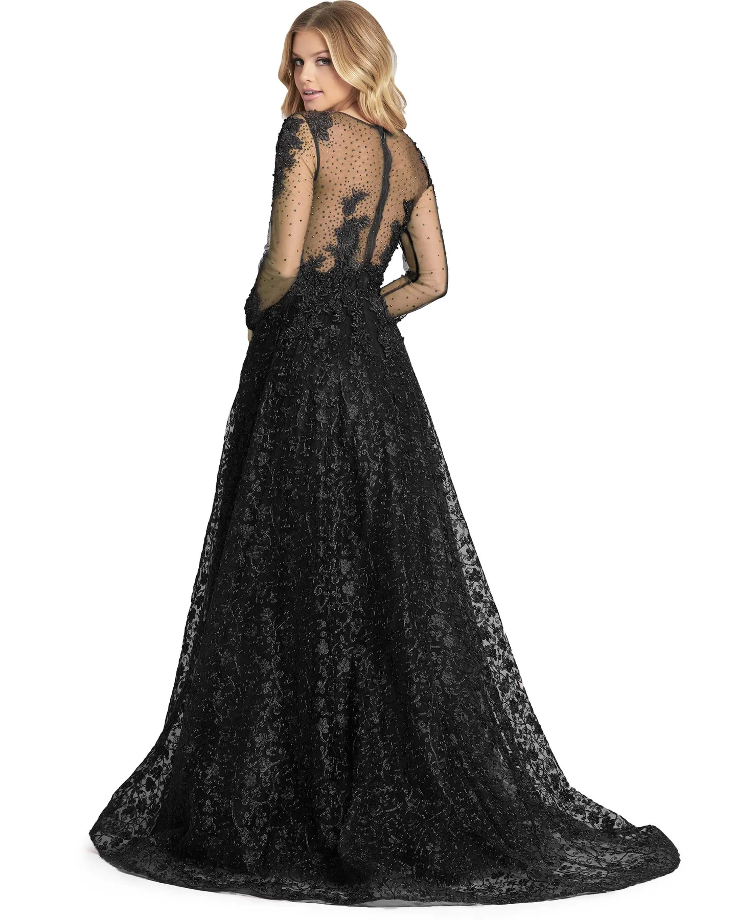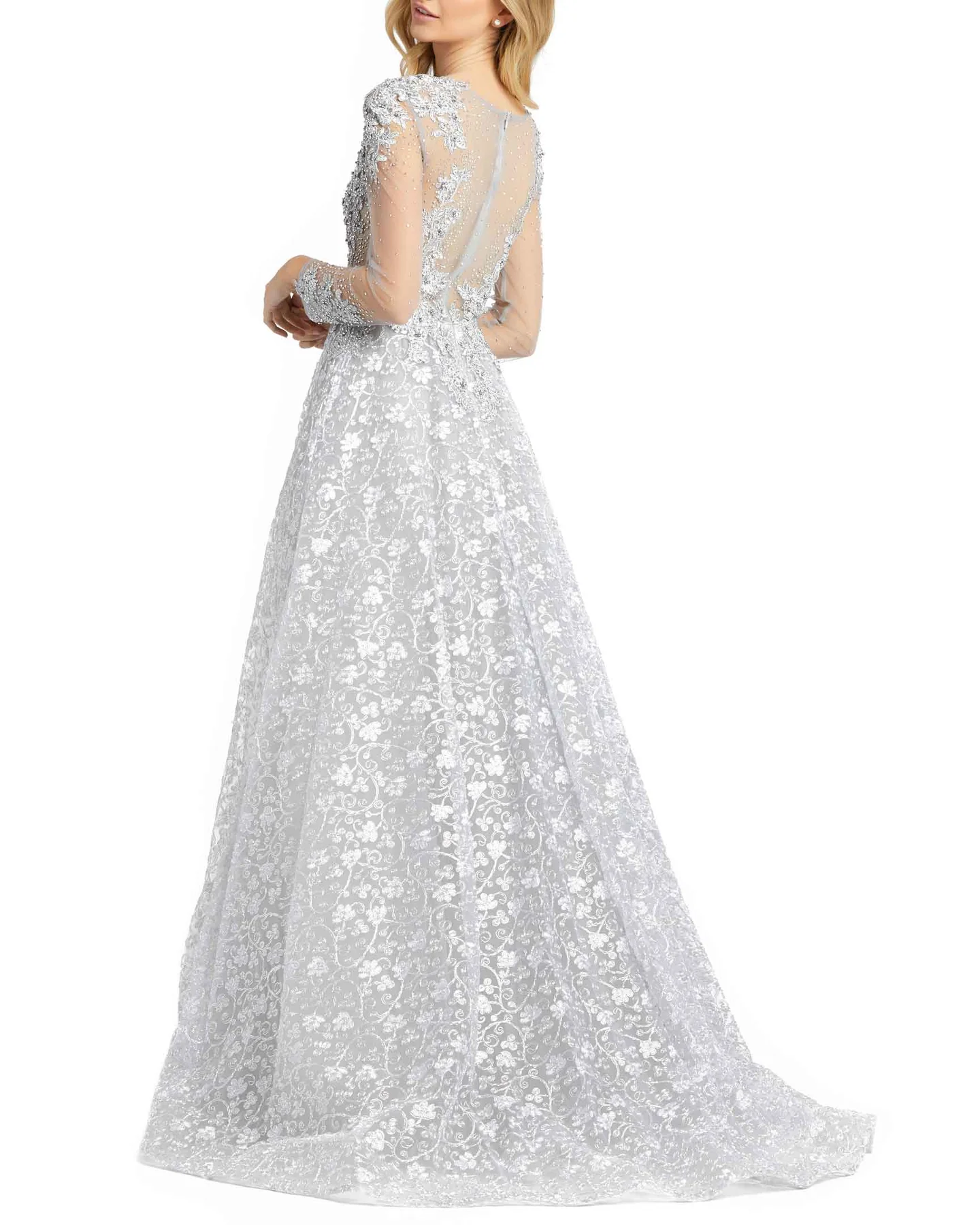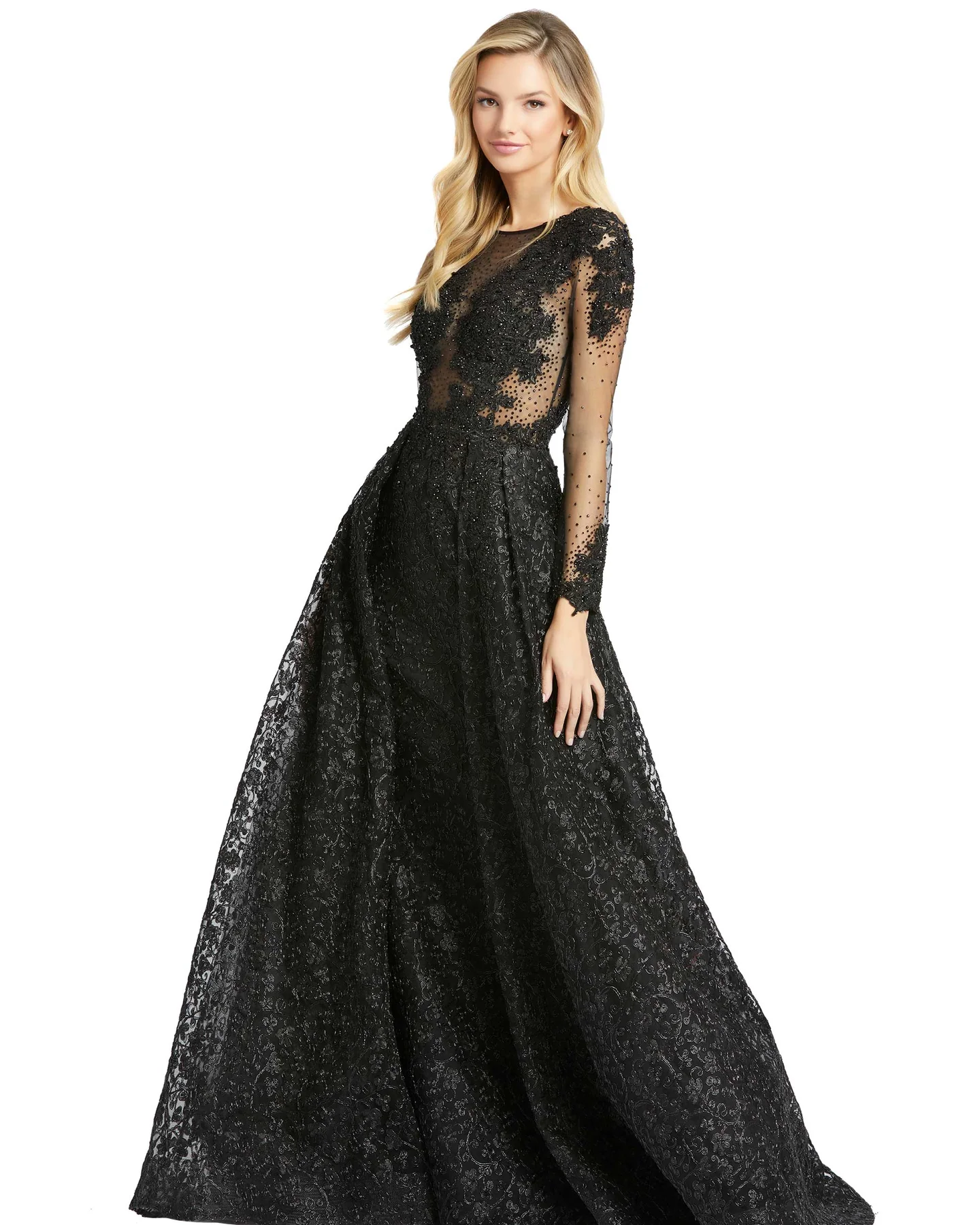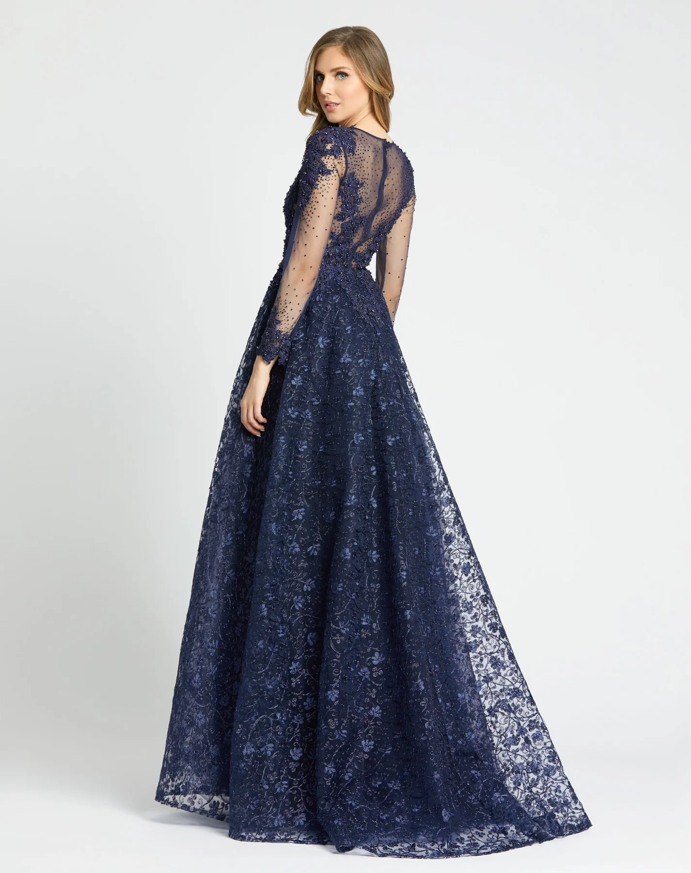 EMBELLISHED ILLUSION LONG SLEEVE A-LINE GOWN