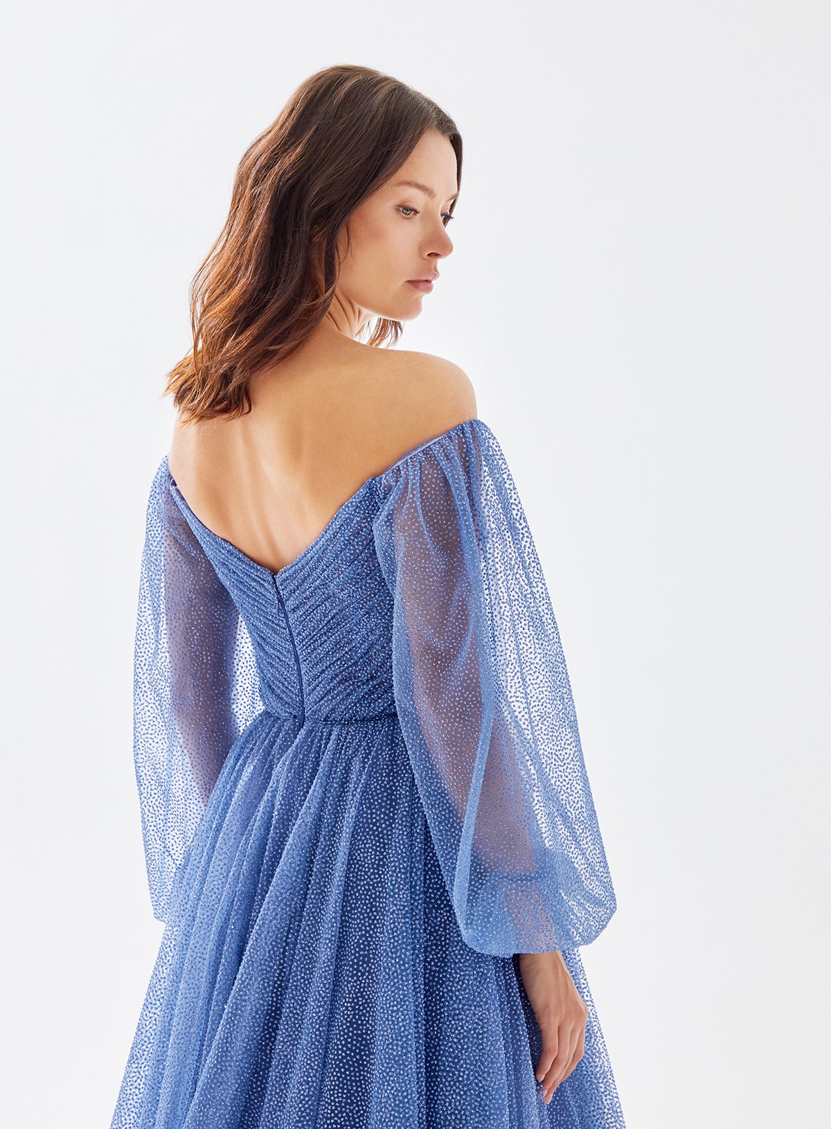 Off Shoulder Shimmer Tulle Sleeved Frill Dress