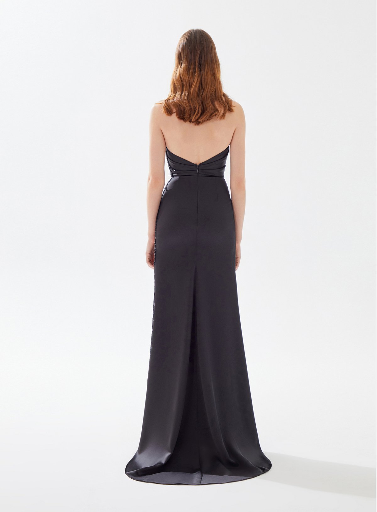Sweetheart Neck Draped Dress with Lace Detailed Slit