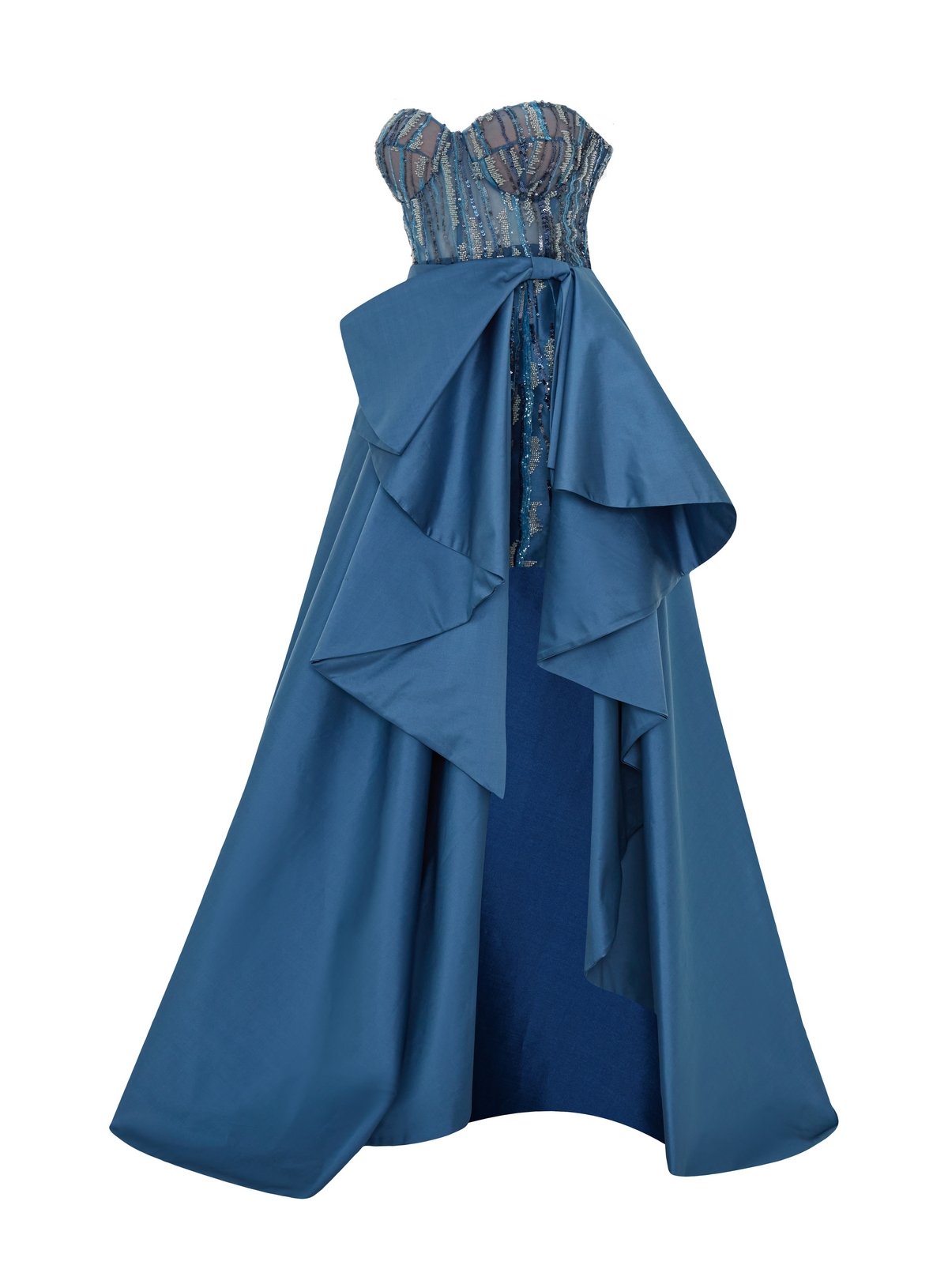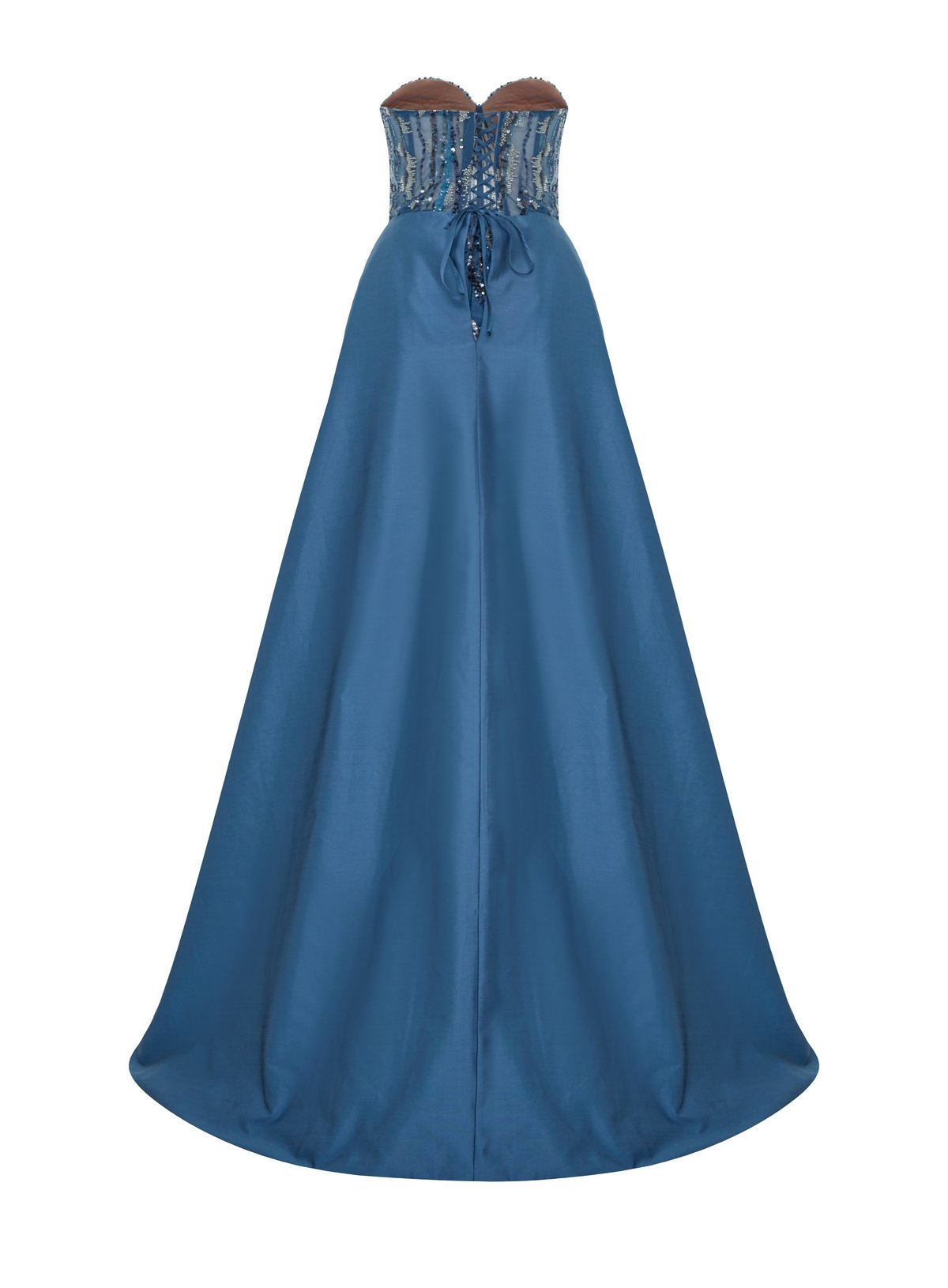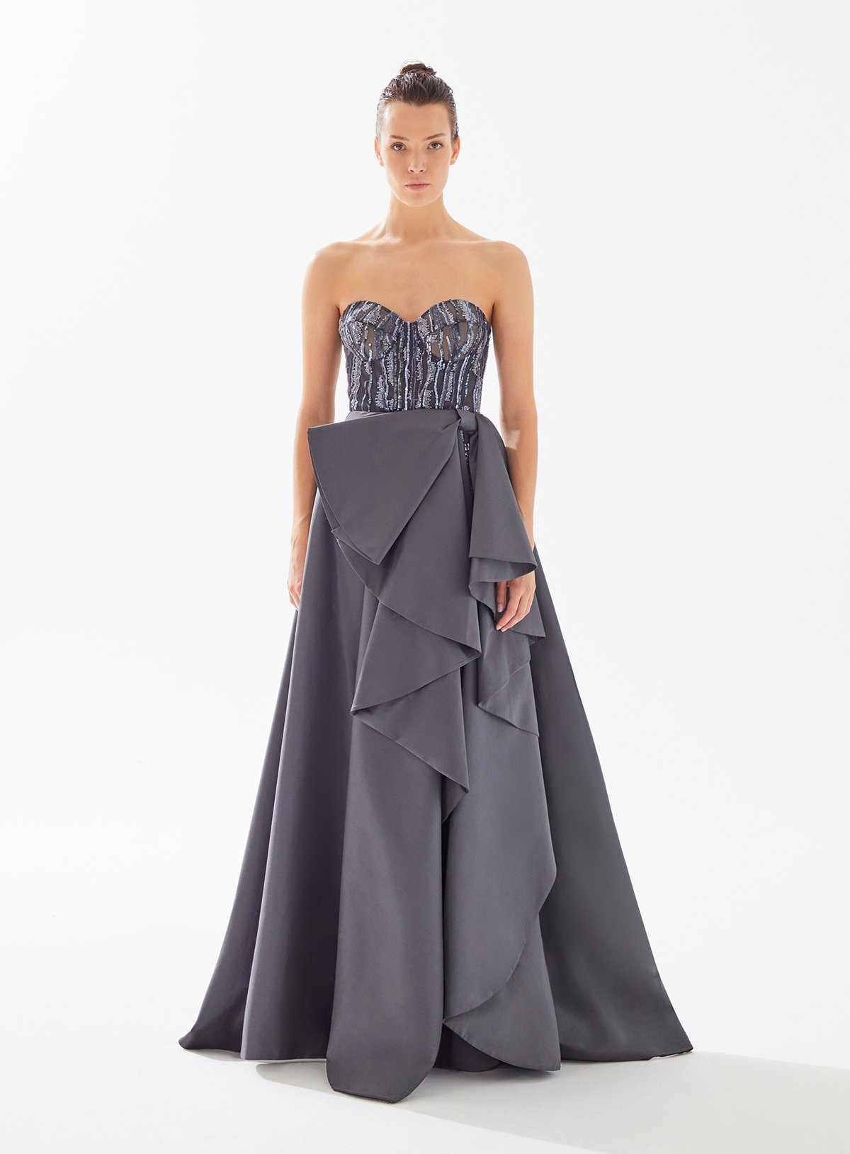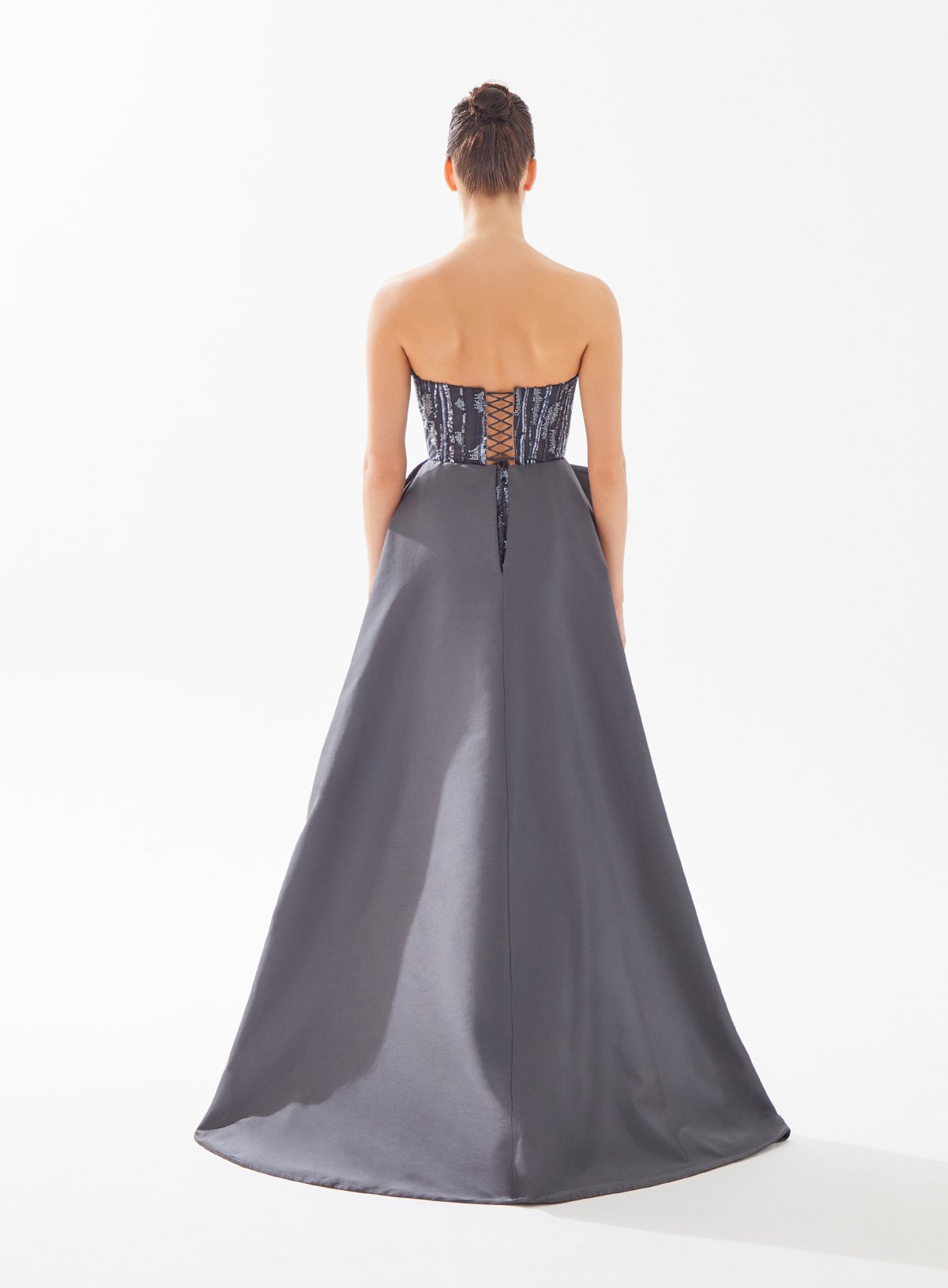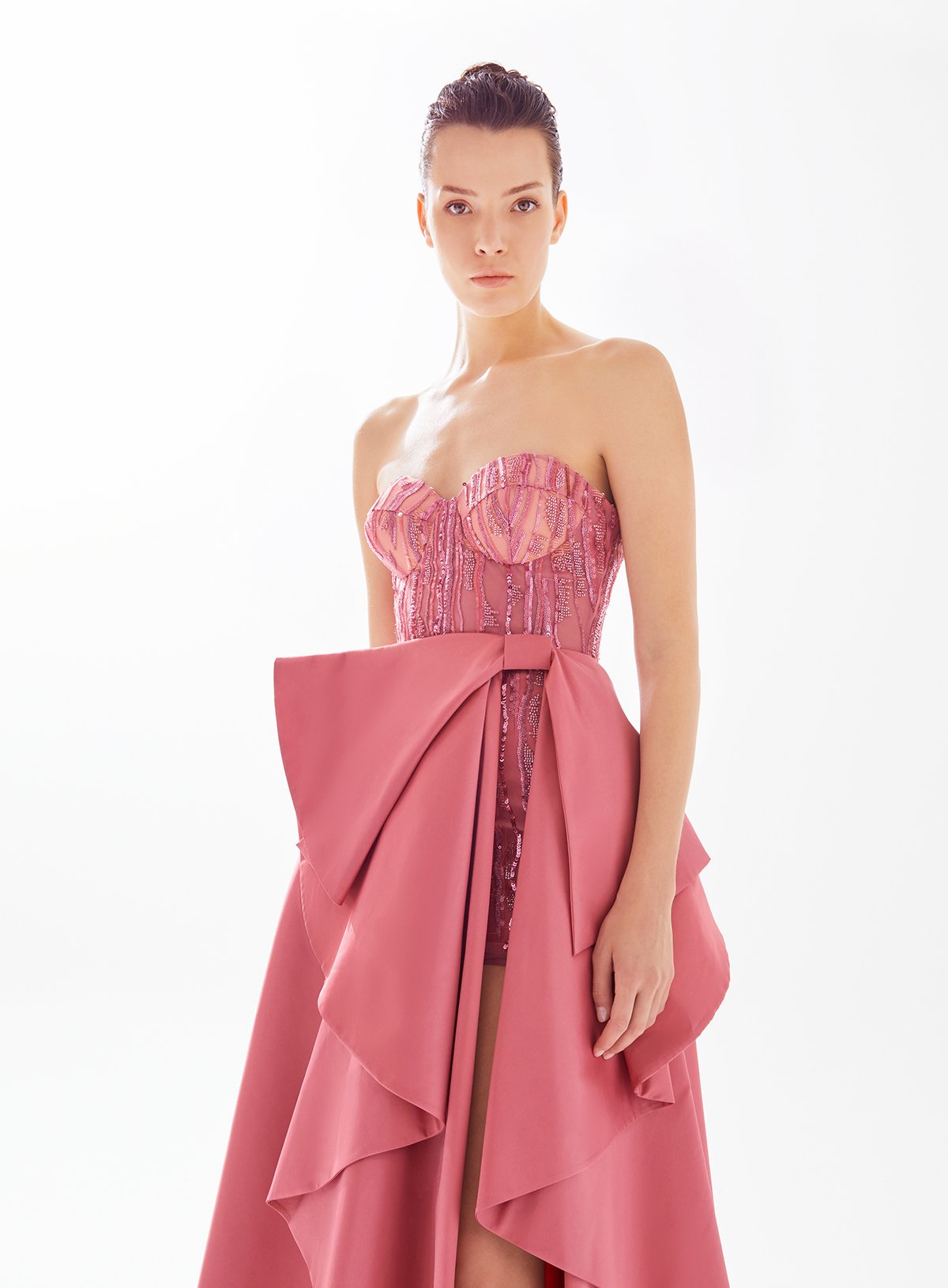 Sweetheart Neck Embellished Corset Top Dress with Side Bow