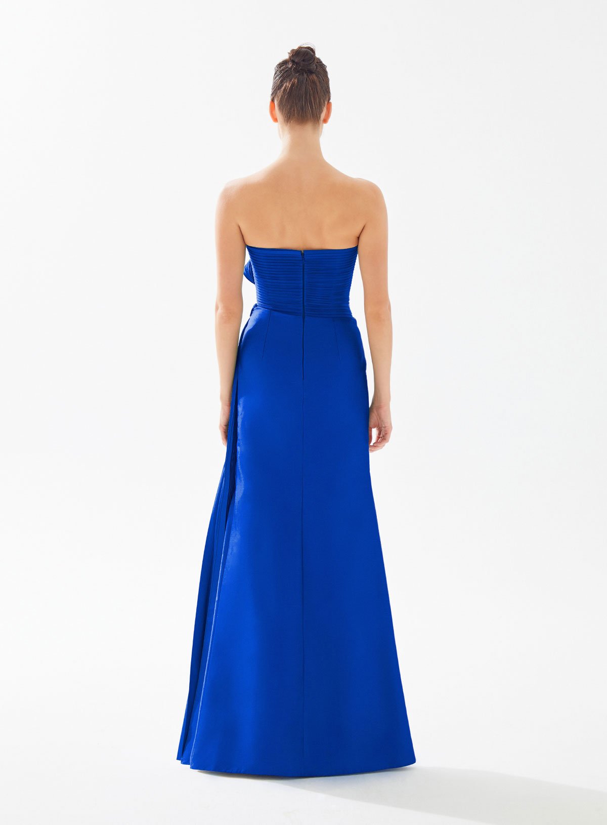 Strapless Draped Dress with Side Pleat and Bow