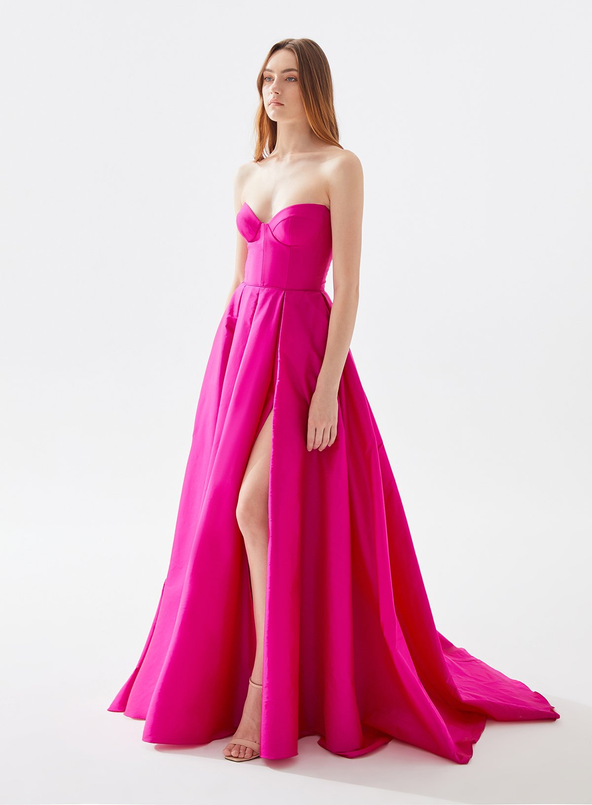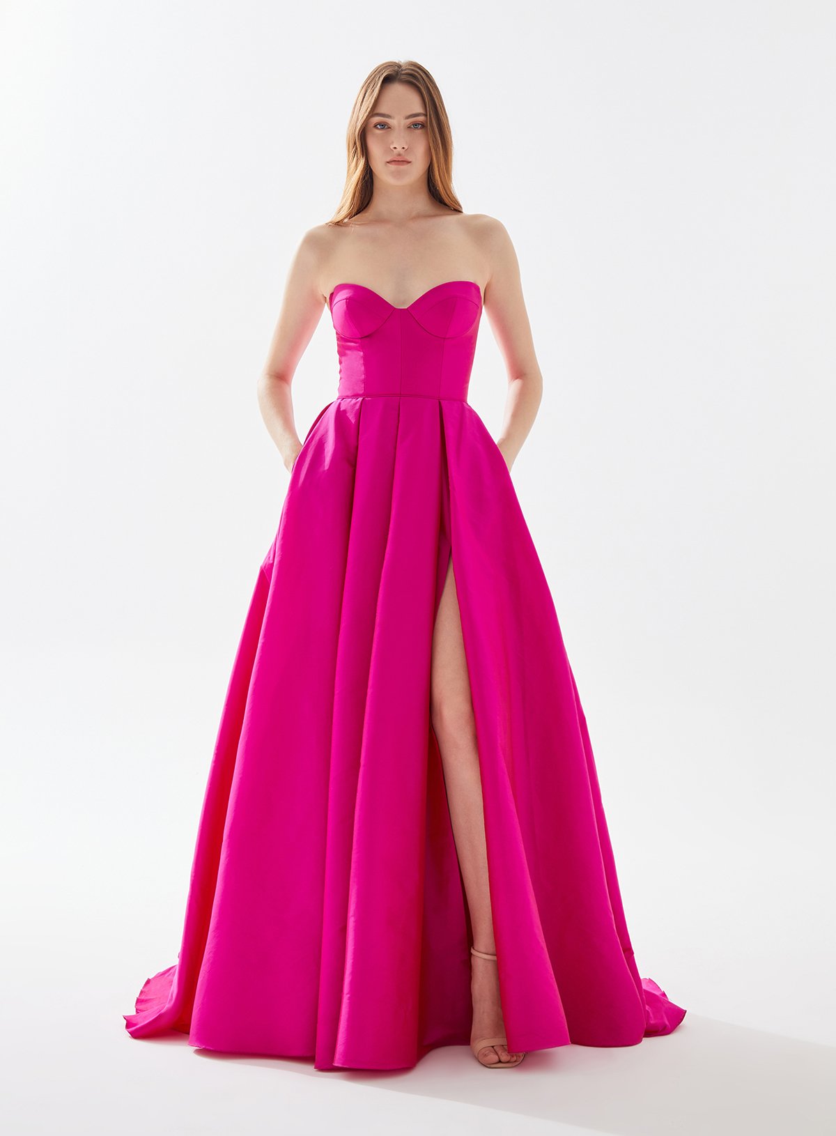 Heart Neck Bustier Taffeta Dress with Pockets