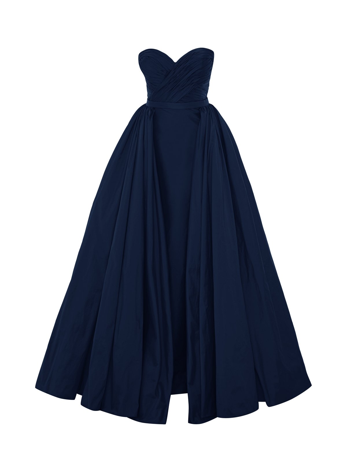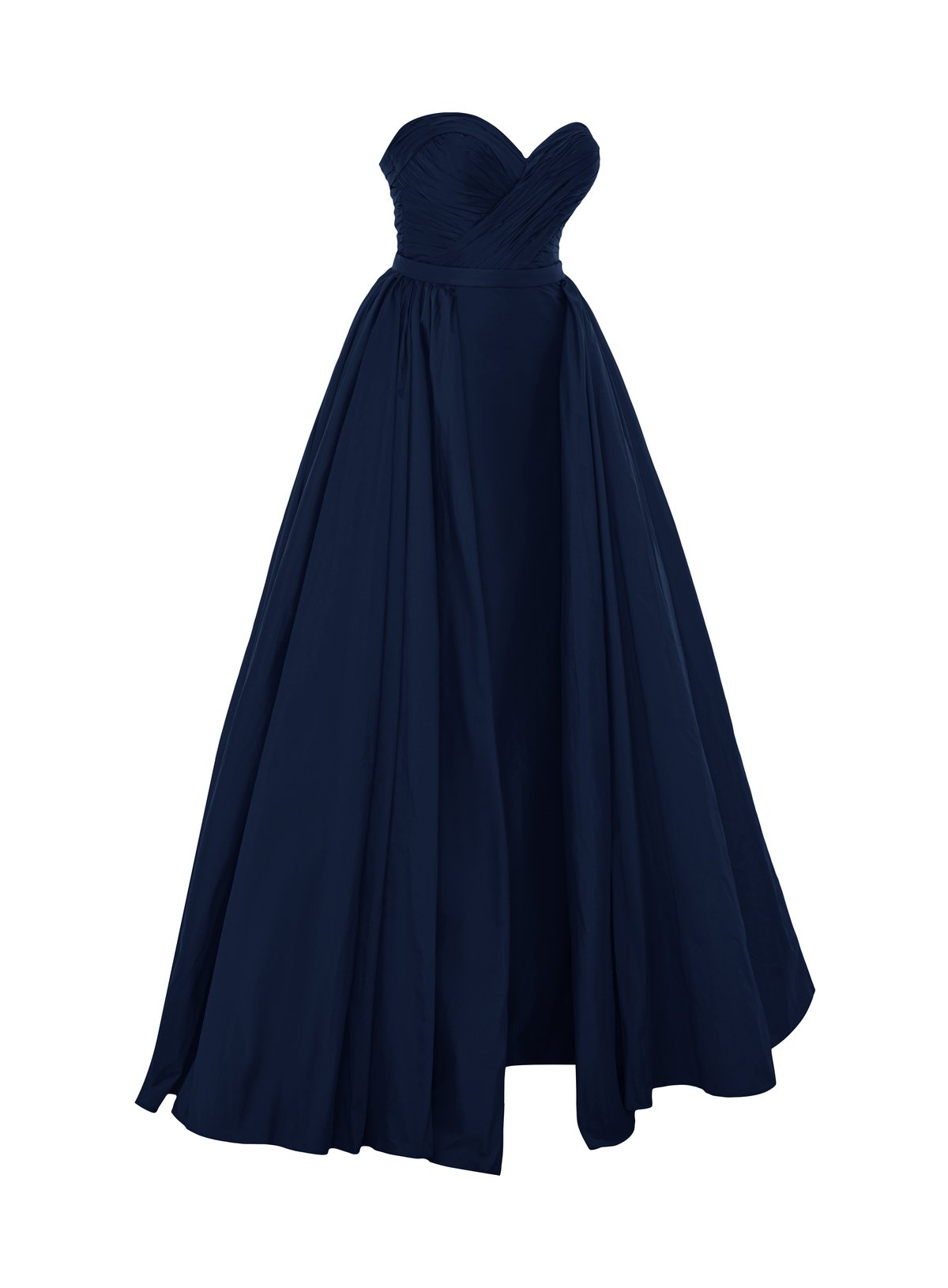 Introducing our exquisite taffeta dress featuring a sweetheart neckline and draped bust detail. Designed with a detachable additional skirt, it offers versatility for various occasions. This elegant ensemble effortlessly combines style and practicality, ensuring you radiate grace and sophistication wherever you go.
