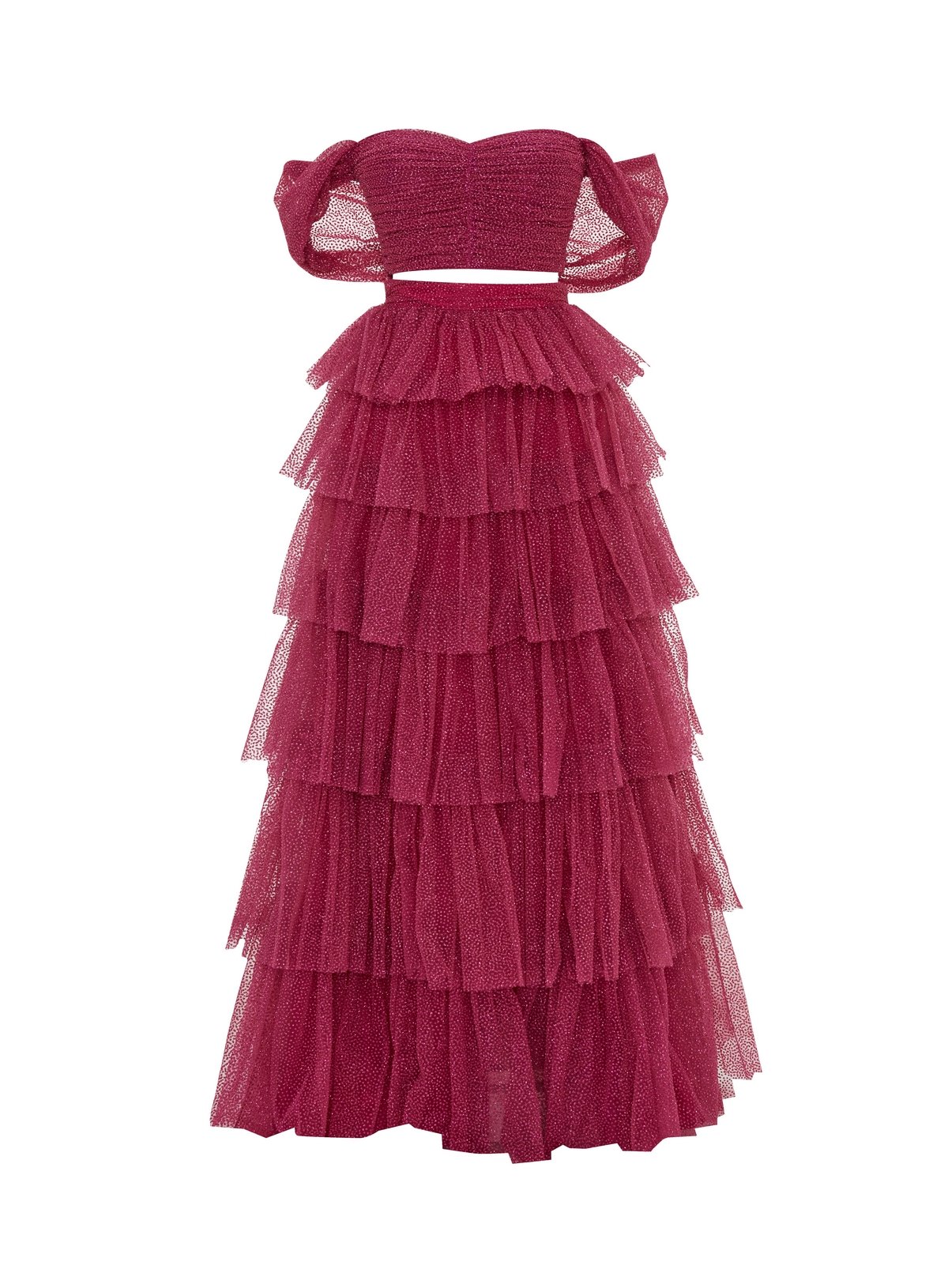 Shimmer Tulle Fabric Off Shouldered Crop Top