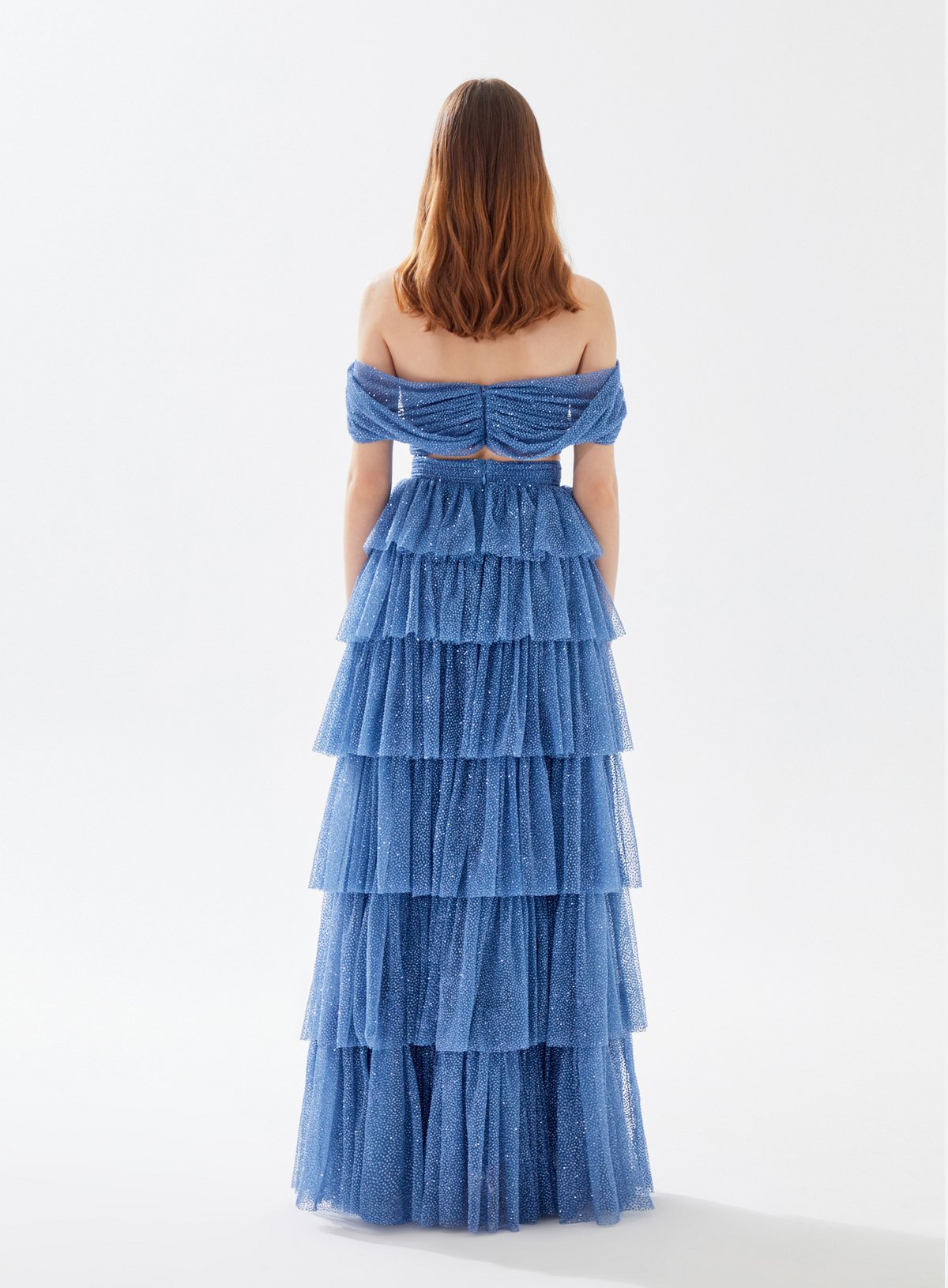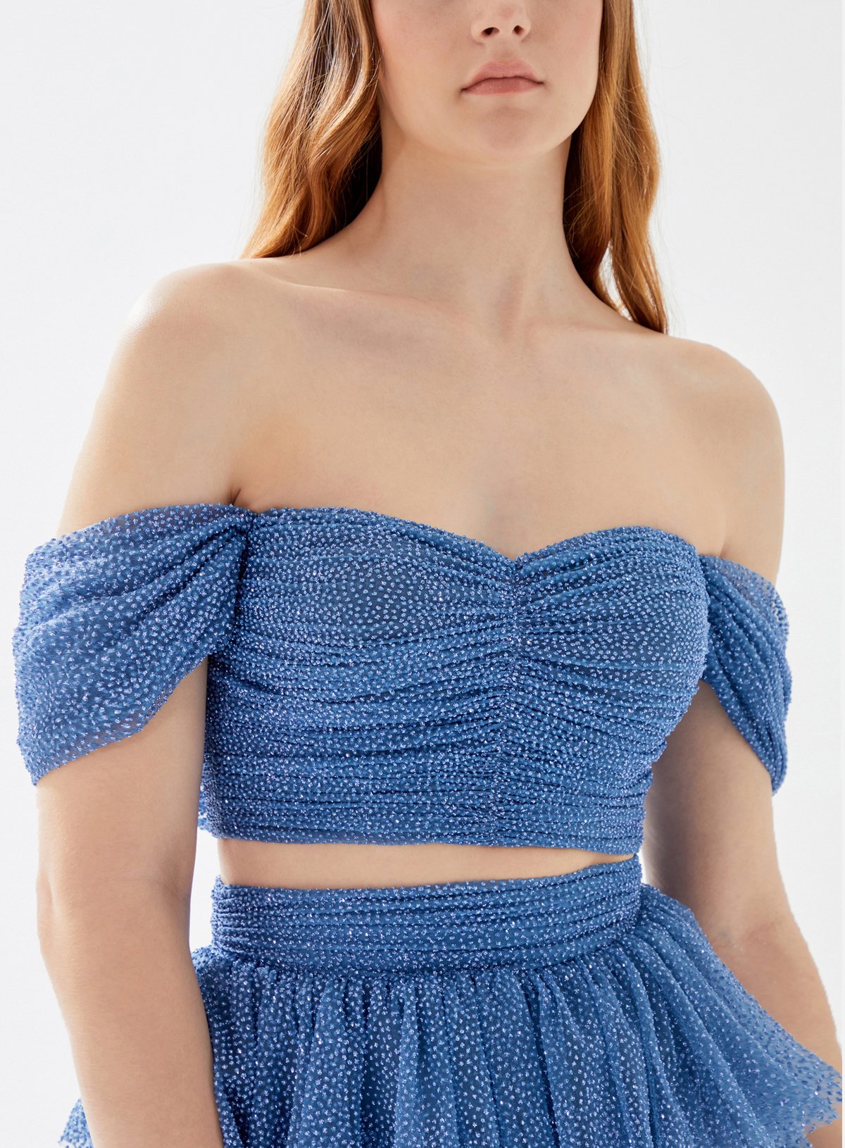 Shimmer Tulle Fabric Off Shouldered Crop Top