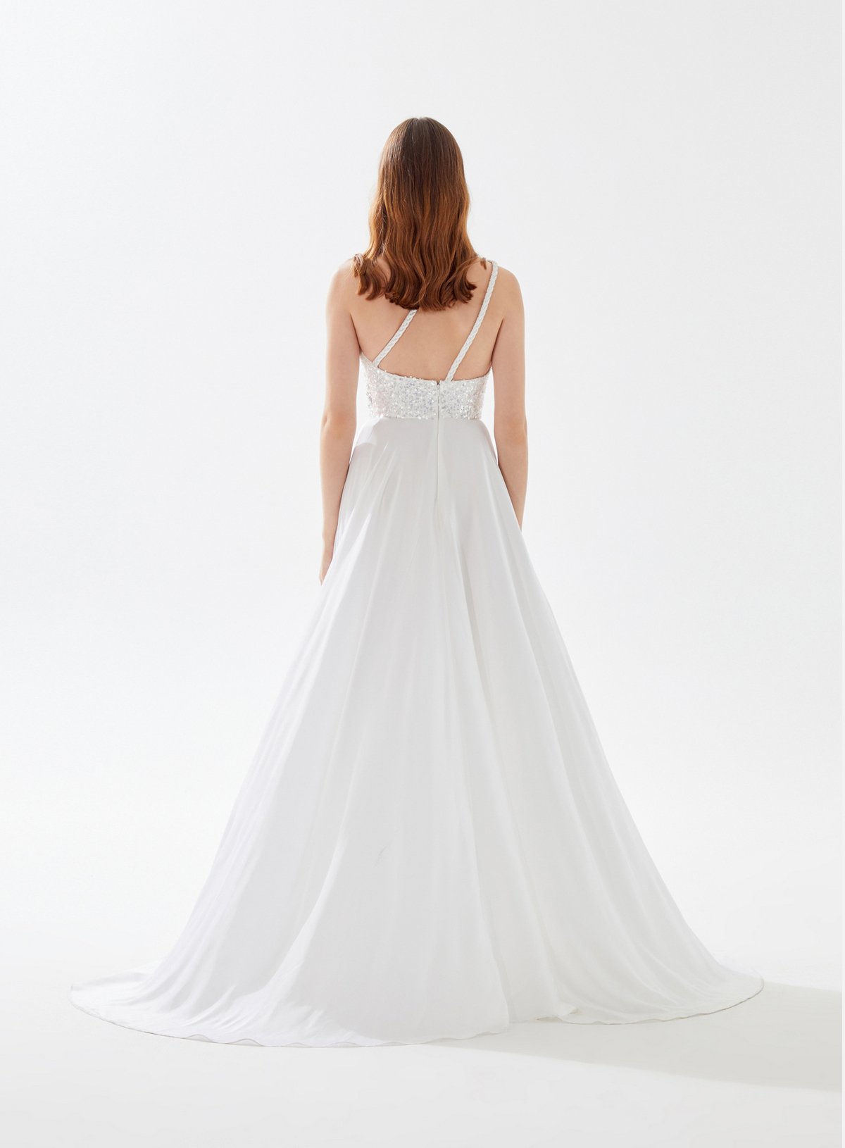 One Shouldered Cut Out Embellished Frill Dress with Slit