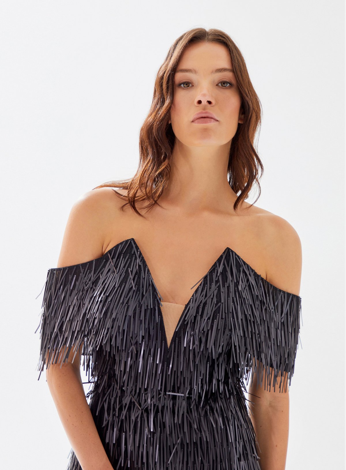 Off Shouldered Fringe Dress