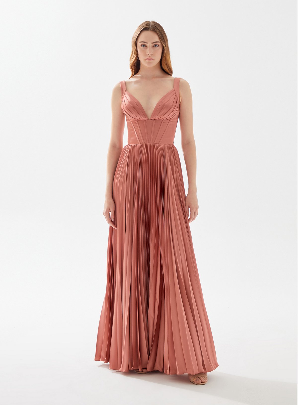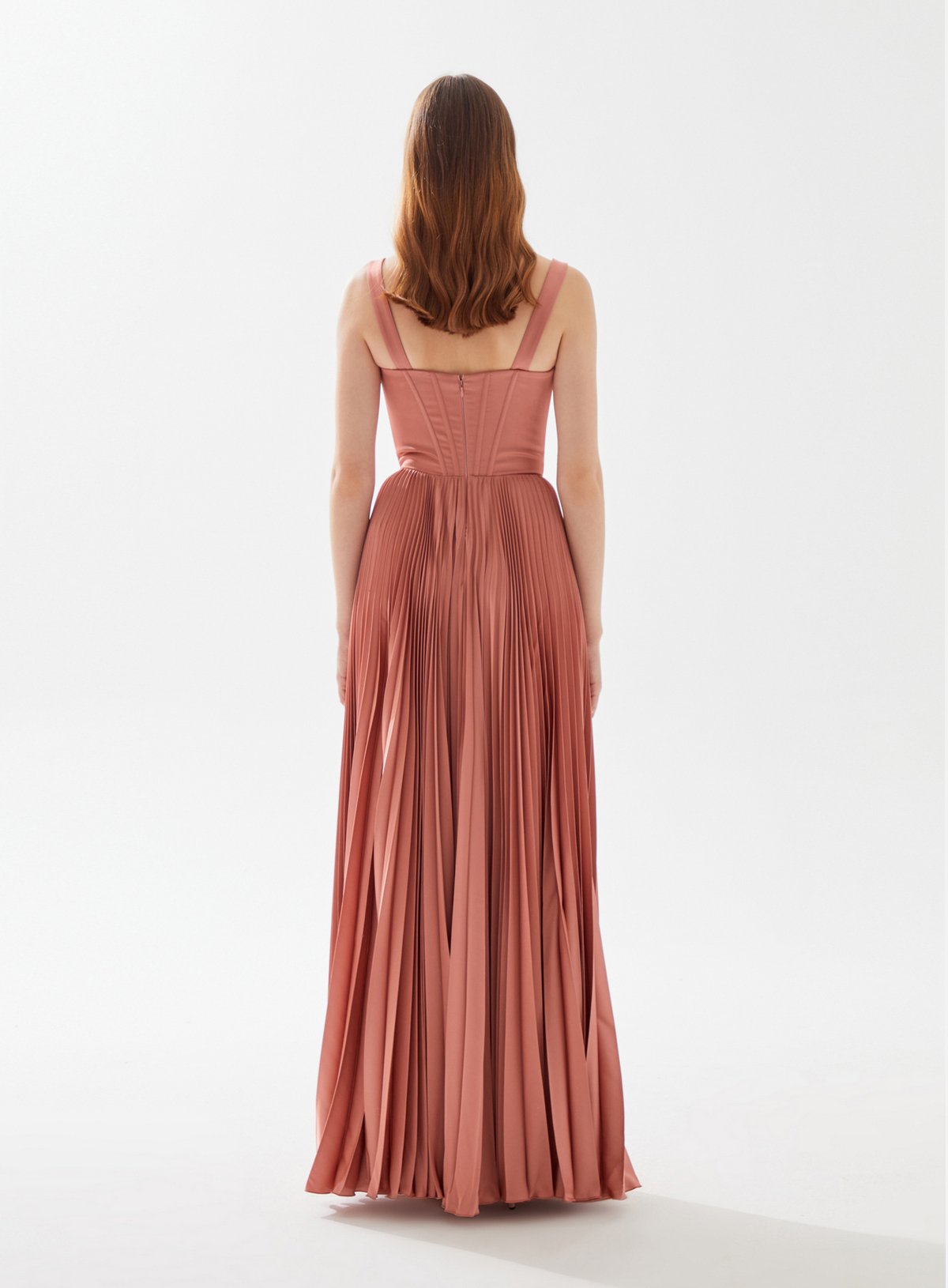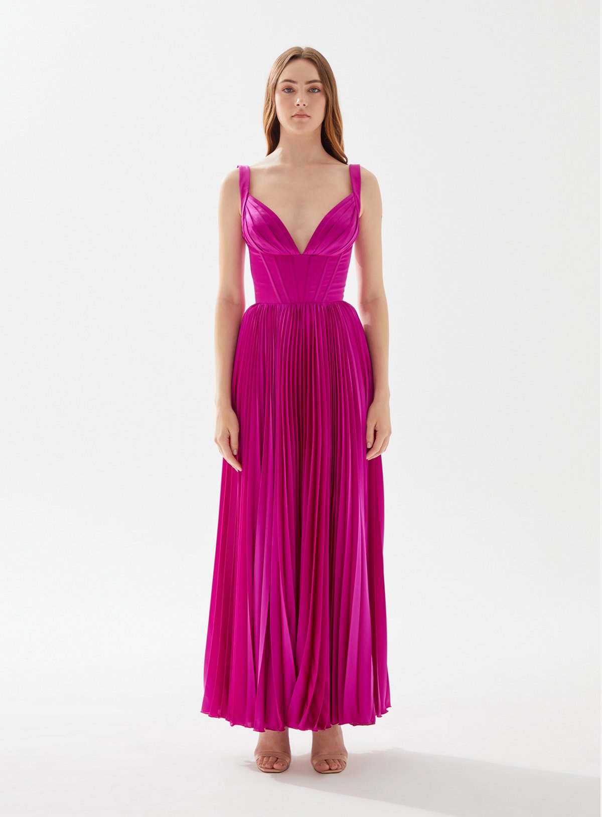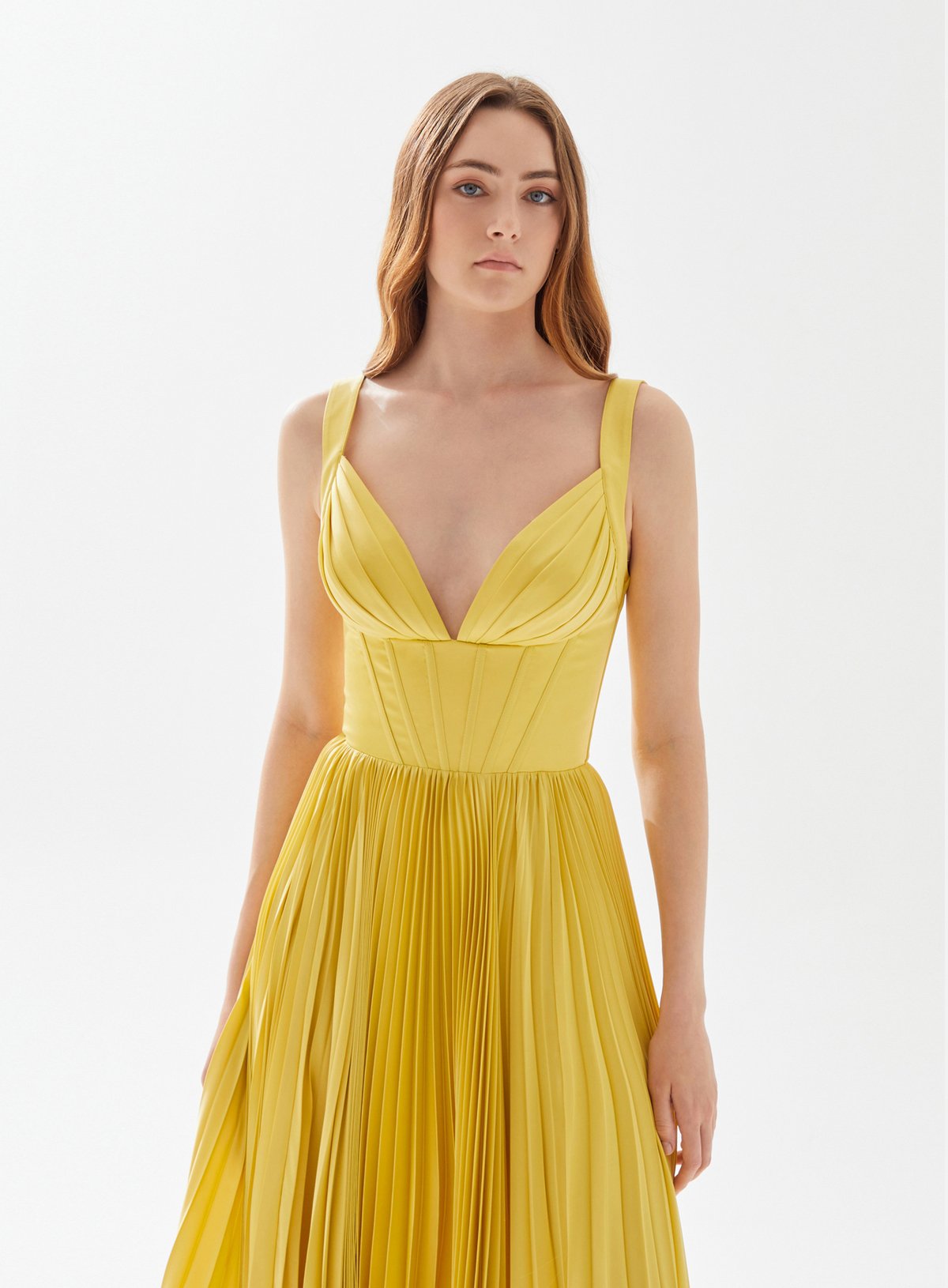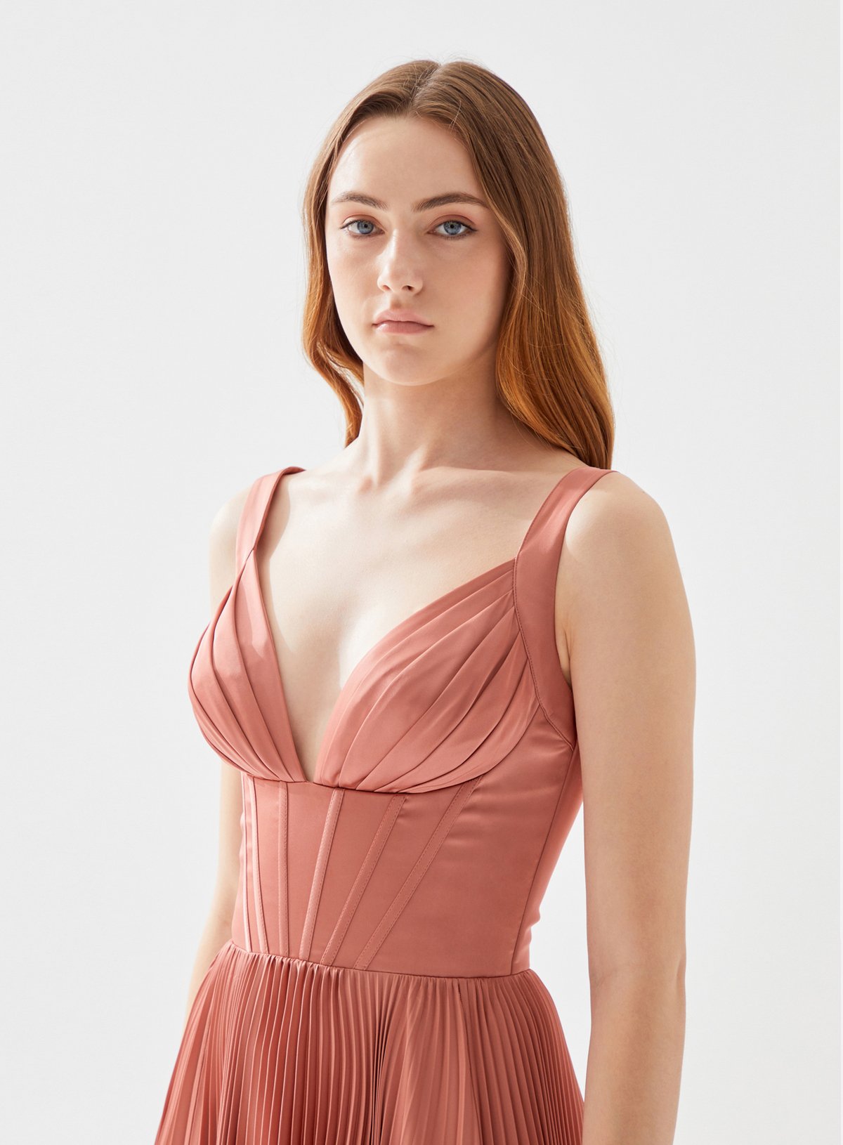 V Neck Bustier Top Midi Dress with Pleats