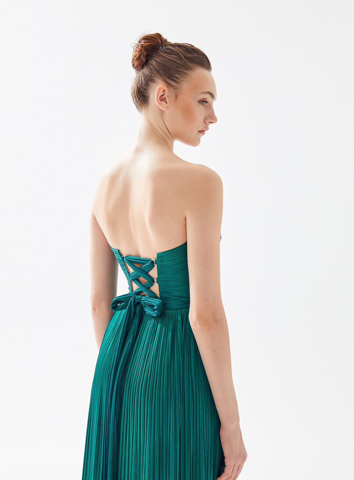 Strapless Draped and Pleated Dress with Side Slit