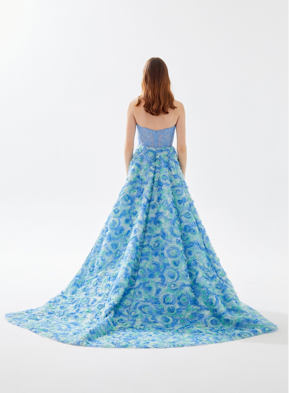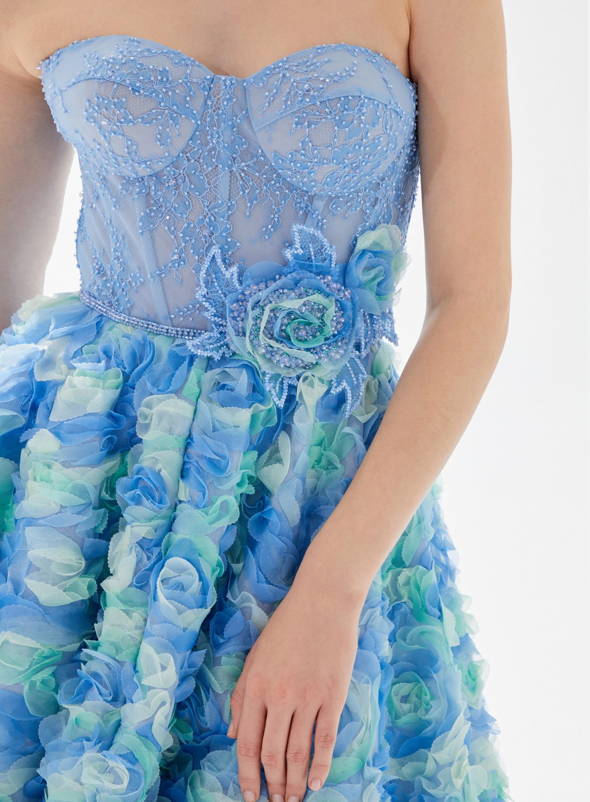 Sweetheart Neck Corset Top Dress with Multi - Colored Tulle Roses