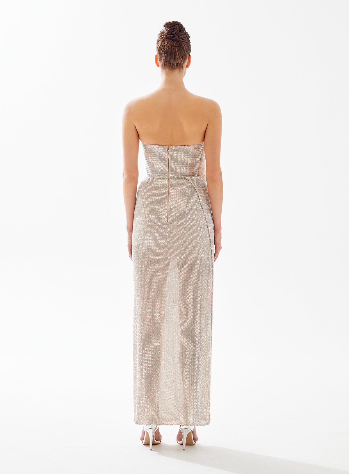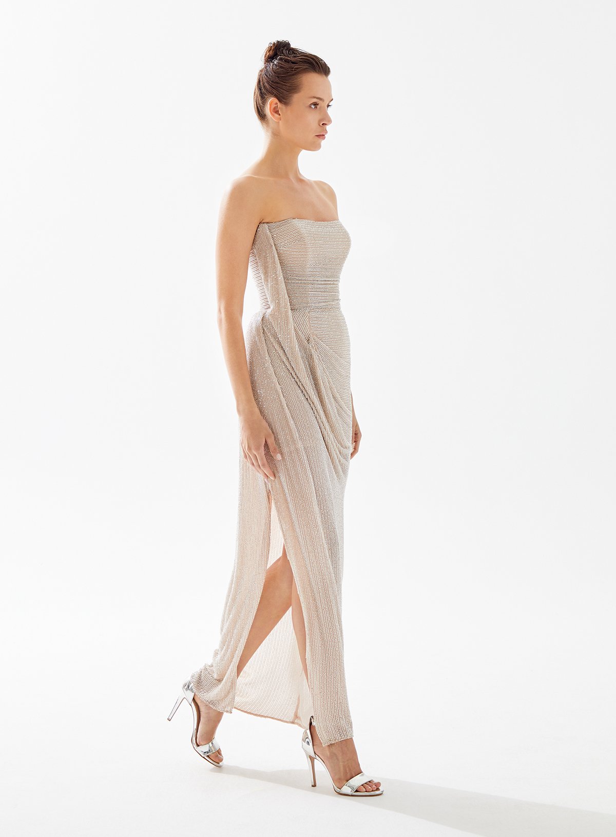 Strapless Beaded Dress with Side Drapery