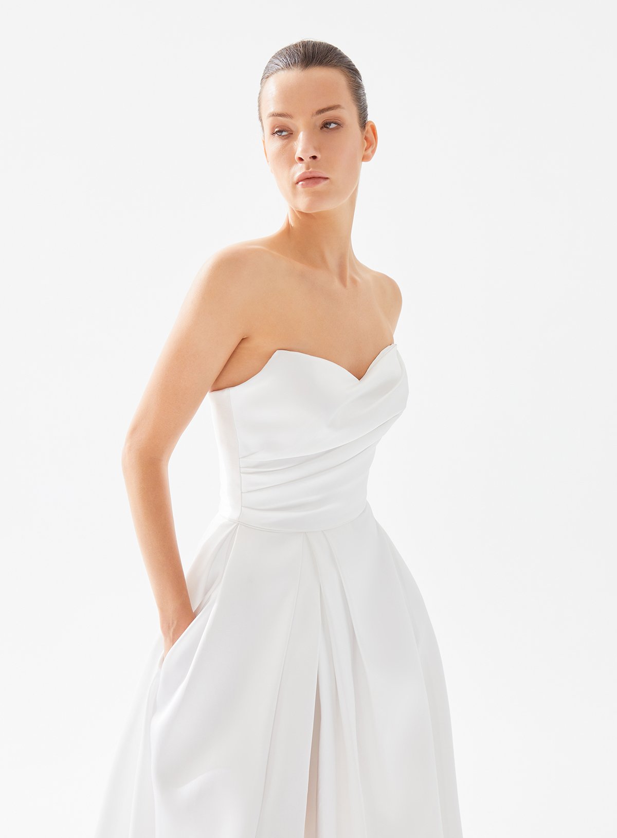Sweetheart Neck Taffeta Dress With Pocket Detail and Slit
